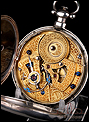 Por su parte, la maquinaria lleva un escape Jacot dúplex chino totalmente decorado con arabescos y motivos vegetales grabados en el metal. Incluye calibre "chino" tipo Tixier, barrilete independiente, volante de tres brazos con pesas aladas de acero cobalto, muelle de volante plano de acero azulado y regulador. La maquinaria lleva grabado el sello con caracteres chinos que encontramos también en la tapa trasera. Este tipo de maquinarias las solía fabricar la firma Bovet en la localidad suiza de Fleurier; este reloj, realizado por C.L. Guinand en Le Locle, es una excepción.