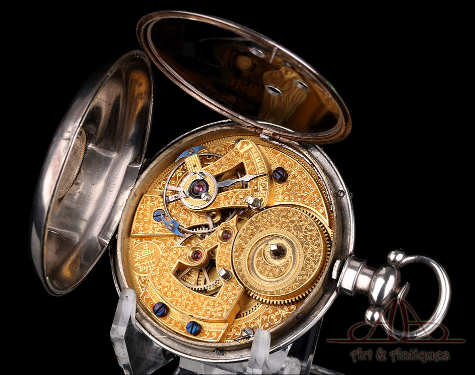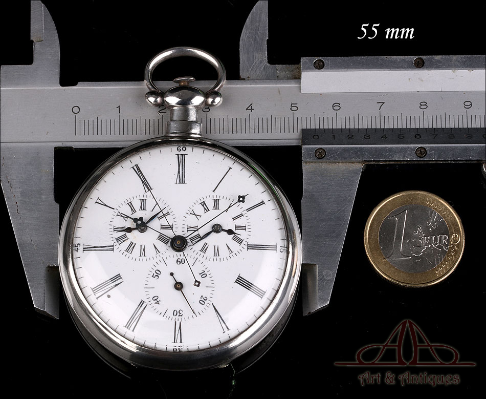 Antiguo Reloj de Bolsillo Chino para Capitán de Barco. Plata. Raro Escape Dúplex. Suiza, Circa 1870 |