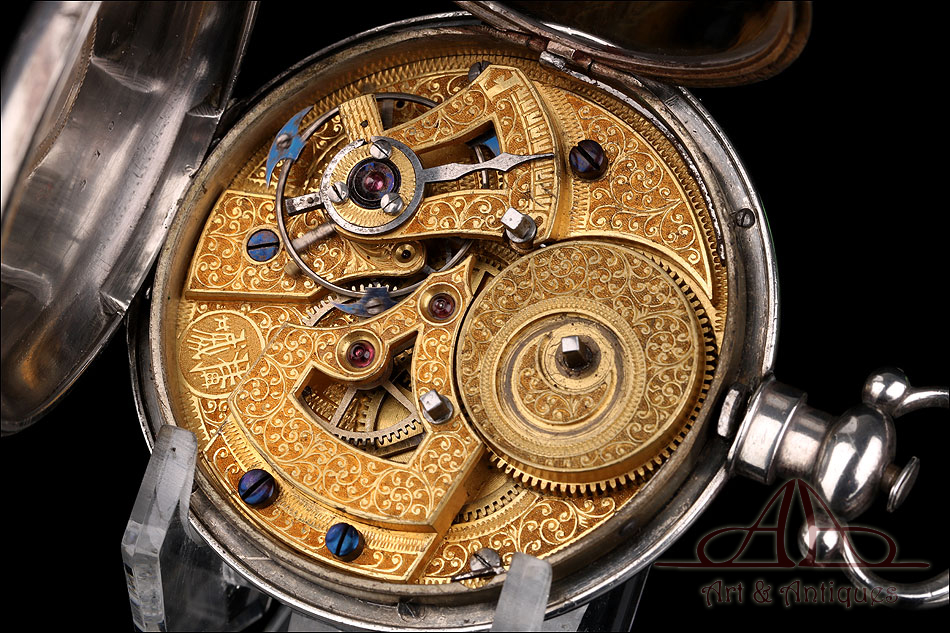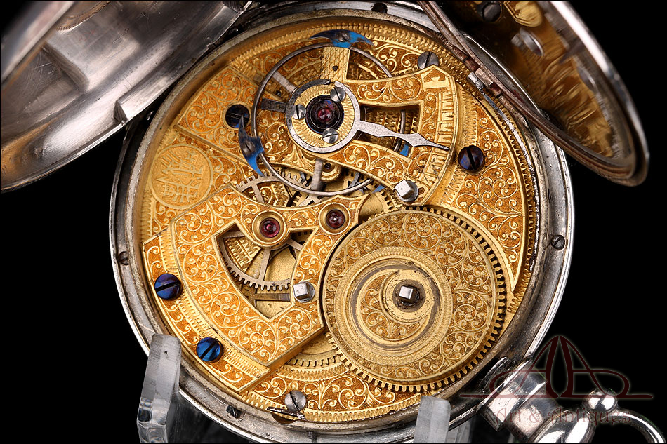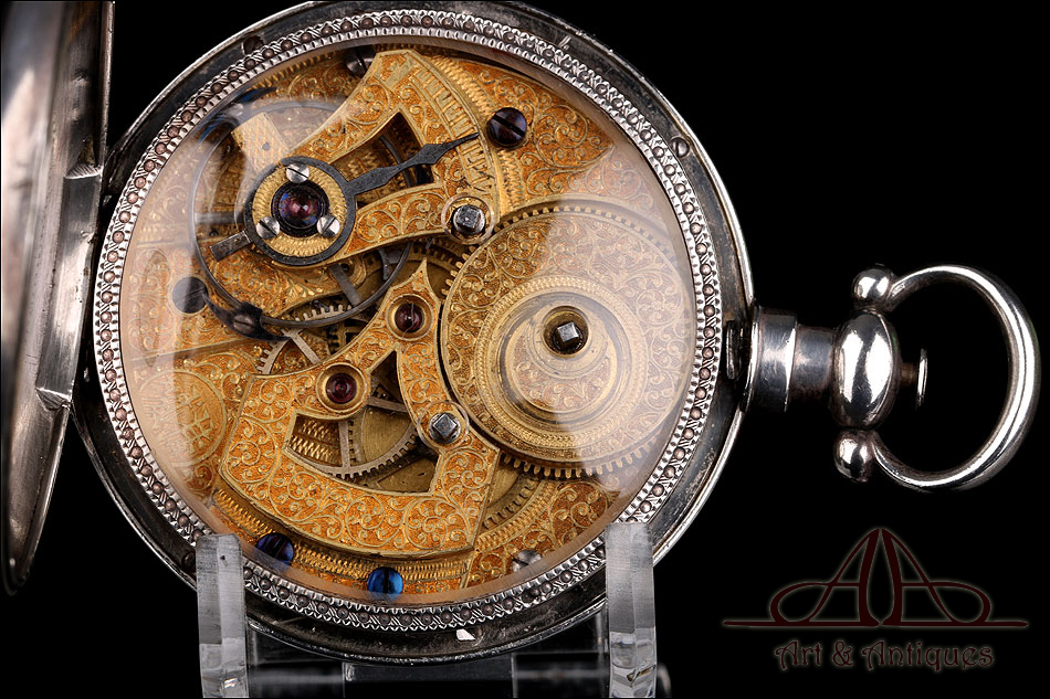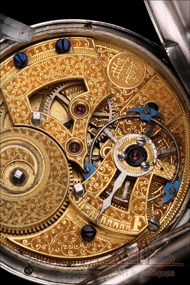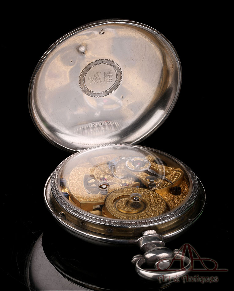 Este antiguo reloj de bolsillo de plata maciza con escape dúplex chino destaca por su exotismo, su calidad y su indiscutible elegancia.