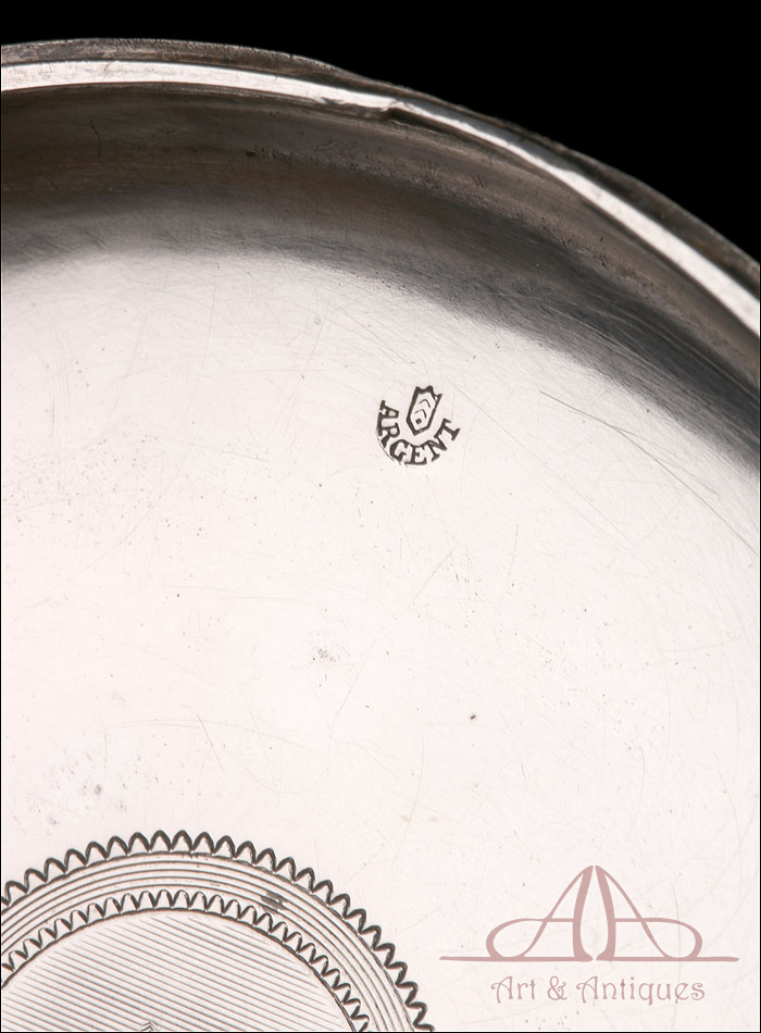 Antiguo reloj de bolsillo de plata maciza con escape dúplex chino, fabricado en Suiza circa 1870 para el mercado chino y en muy buenas condiciones. Este precioso reloj es un modelo de capitán de barco y se encuentra en excelente estado de funcionamiento. La caja de dos tapas está fabricada en plata pulida 800 y lleva colgante de botón ovoide de plata, con doble esférula y anilla oval en la posición del doce con respecto a la esfera. El colgante lleva el contraste que identifica la plata en la provincia suiza de Neuchâtel.