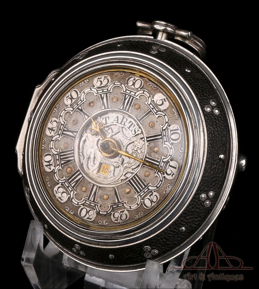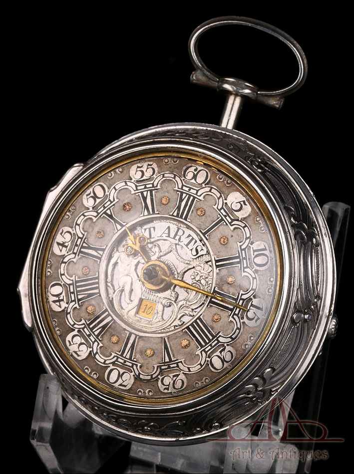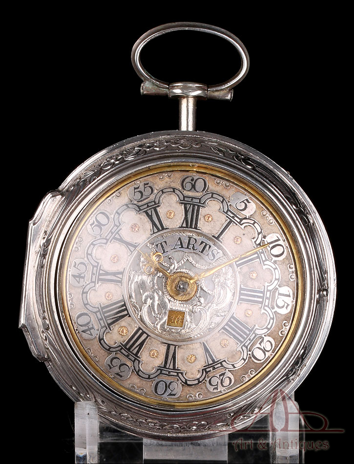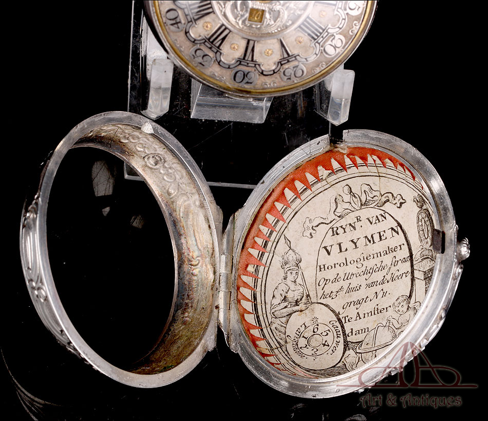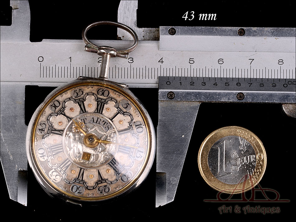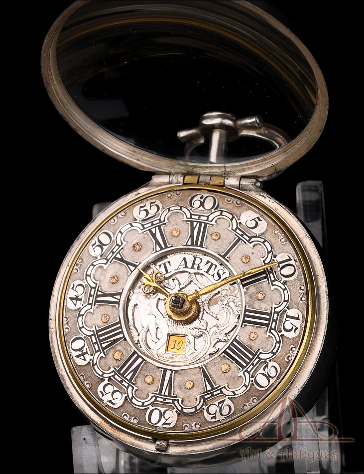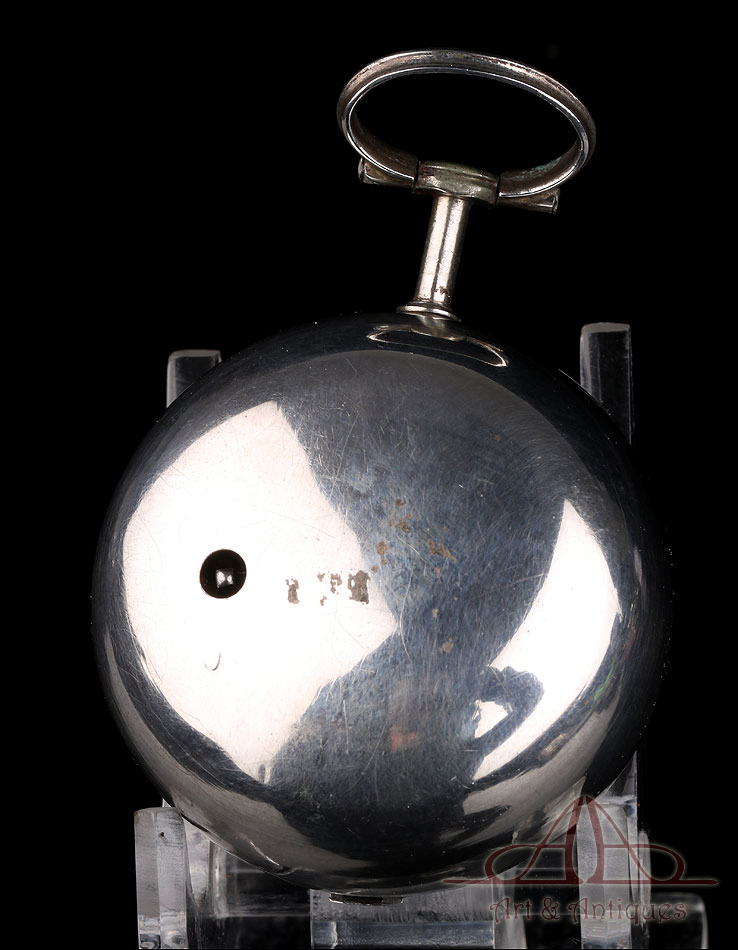 Antiguo reloj catalino de plata con triple caja y calendario, fabricado en Londres por el relojero John Tarts, circa 1779 para el mercado holandés y en excelente estado de conservación y funcionamiento.