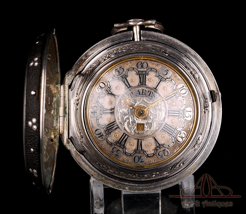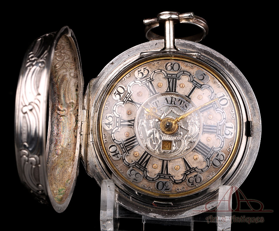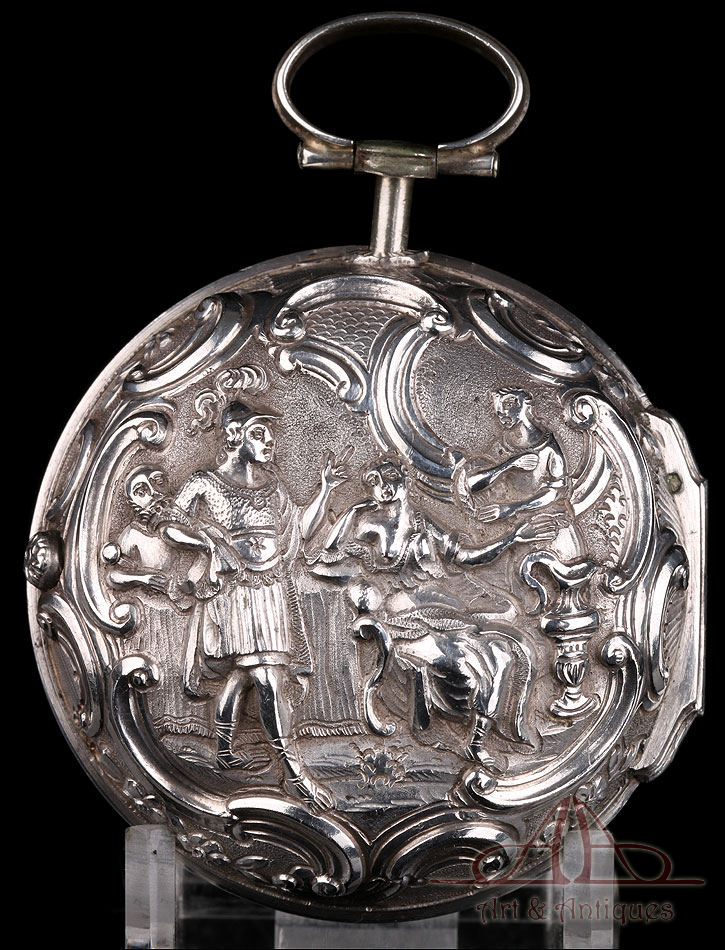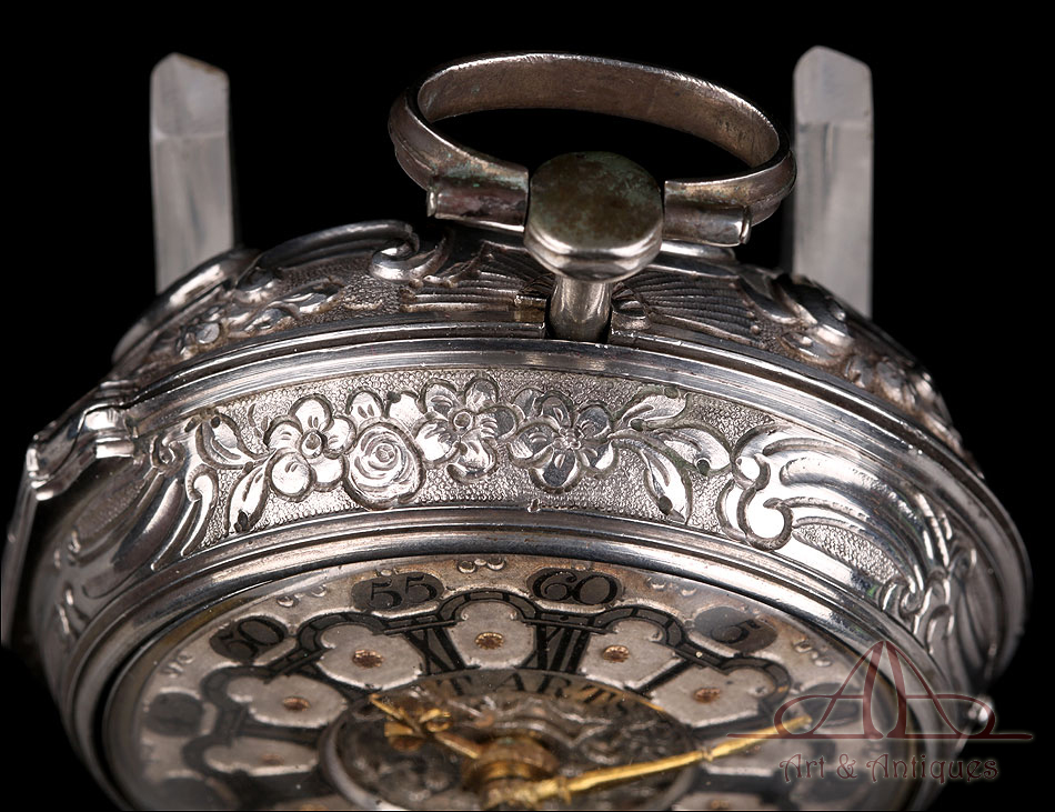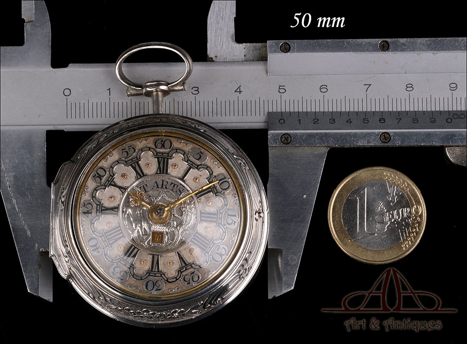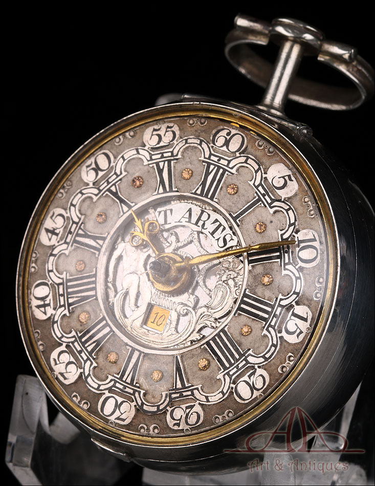 Antiguo reloj catalino de plata con triple caja y calendario, fabricado en Londres por el relojero John Tarts, circa 1779 para el mercado holandés y en excelente estado de conservación y funcionamiento.