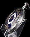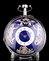 La esfera es de metal plateado con fondo esmaltado en azul real y anillo de números con fondo blanco y números Breguet negros. Las agujas son de metal dorado y están flanqueadas por dos autómatas (jaquemarts) estilo “Martin Martine”, que representan a una dama y un caballero, vestidos a la usanza del Imperio Francés y que simulan golpear sendas campanas de plata cuando el reloj da las horas y los cuartos. Las campanas se sitúan en la parte superior de la esfera y forman parte de un detalle decorativo de guirnaldas. En la parte inferior aparece un detalle similar con una lira.