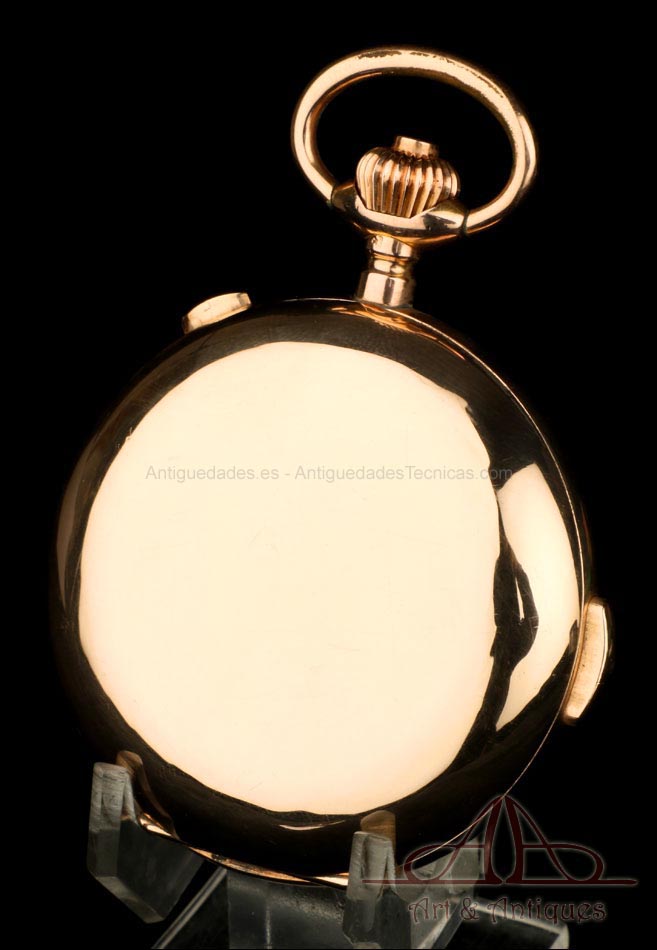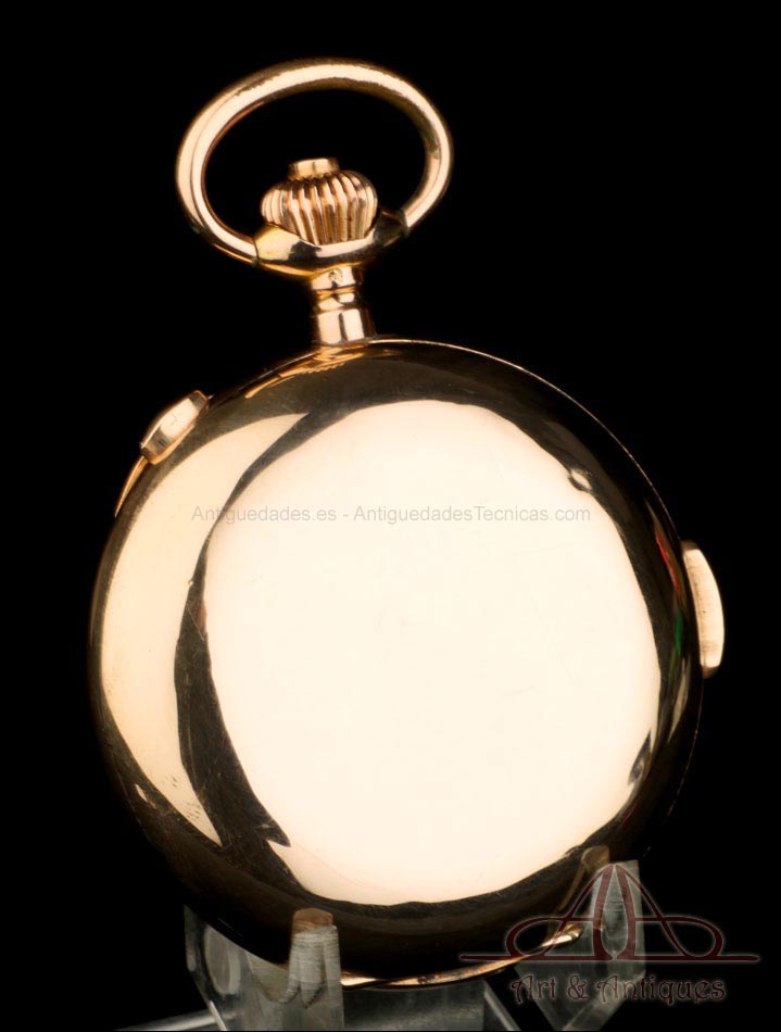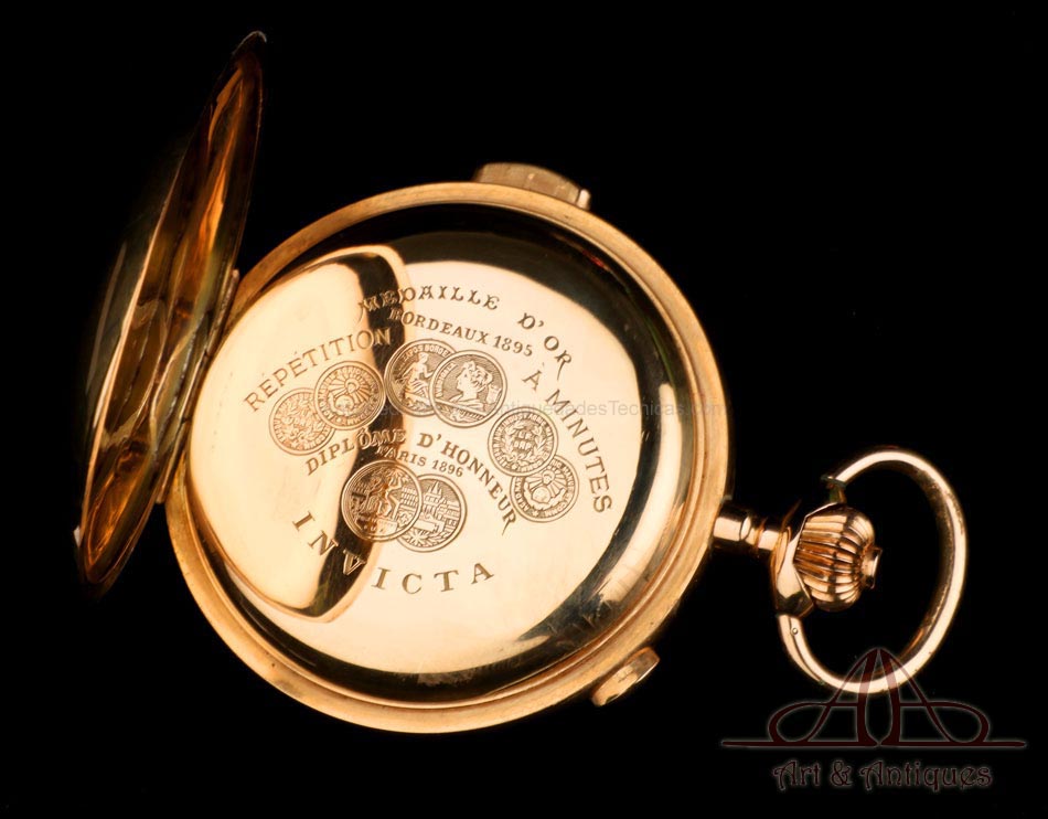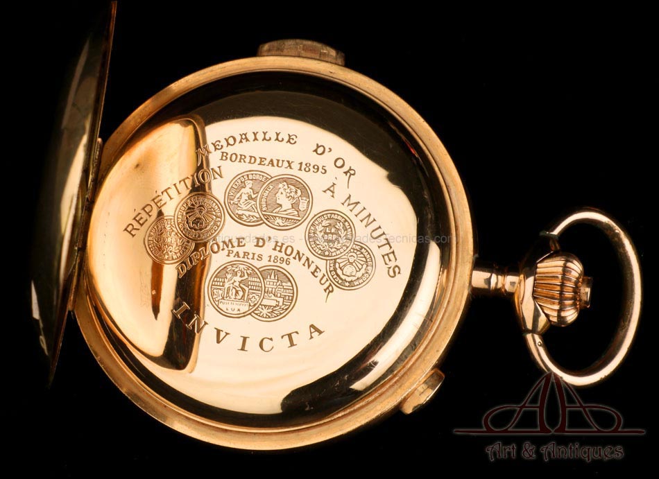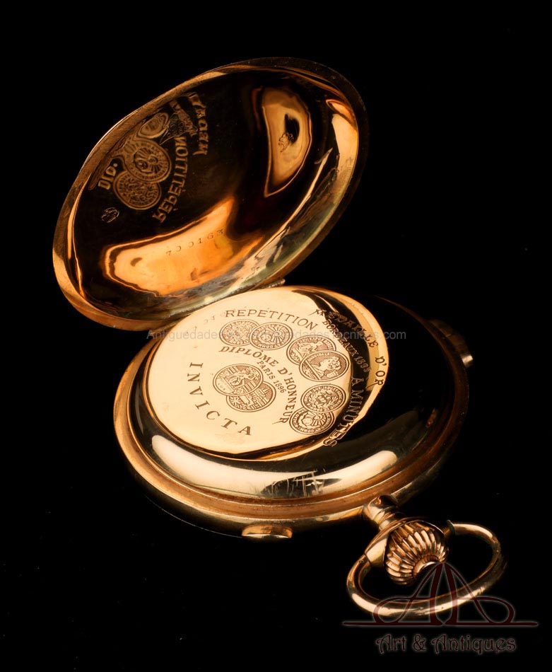Antiguo Reloj de Bolsillo Oro Invicta. Sonería Minutos. Cronómetro. Suiza, Circa 1900 |