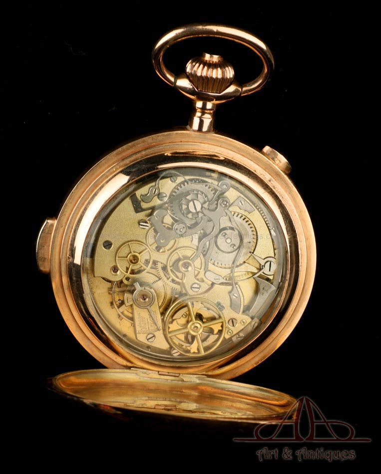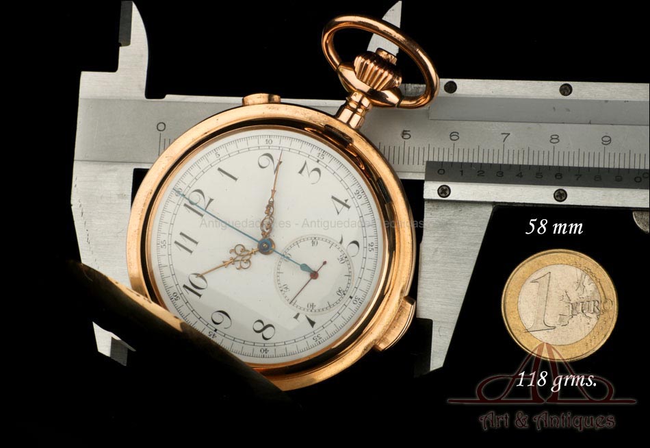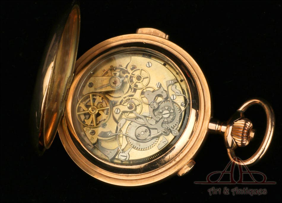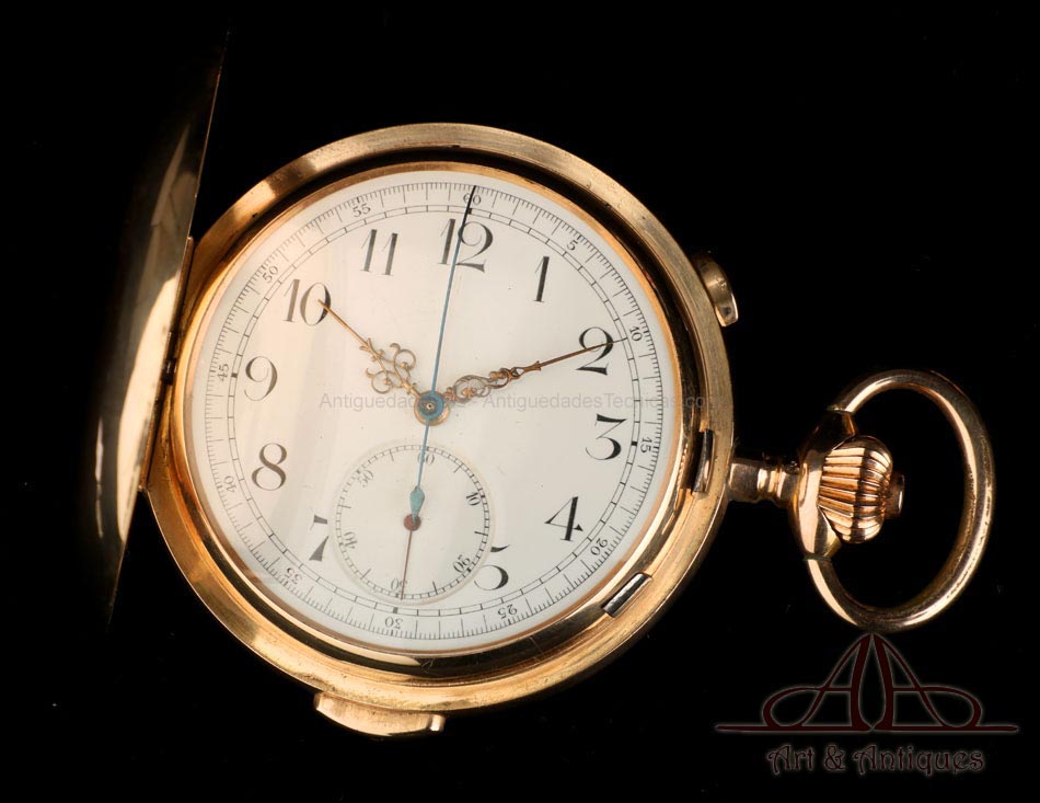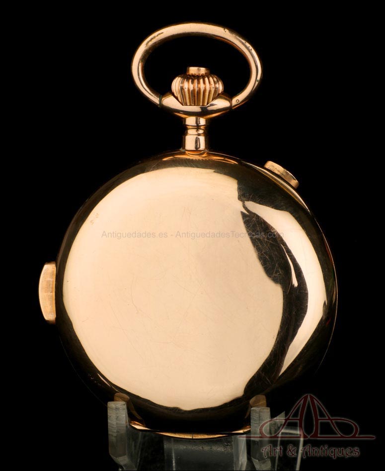 Antiguo Reloj de Bolsillo Oro Invicta. Sonería Minutos. Cronómetro. Suiza, Circa 1900 |