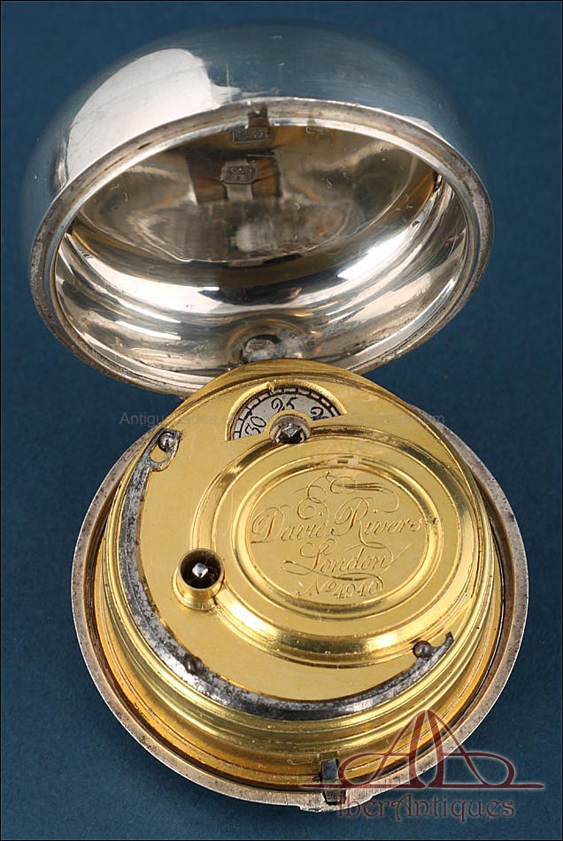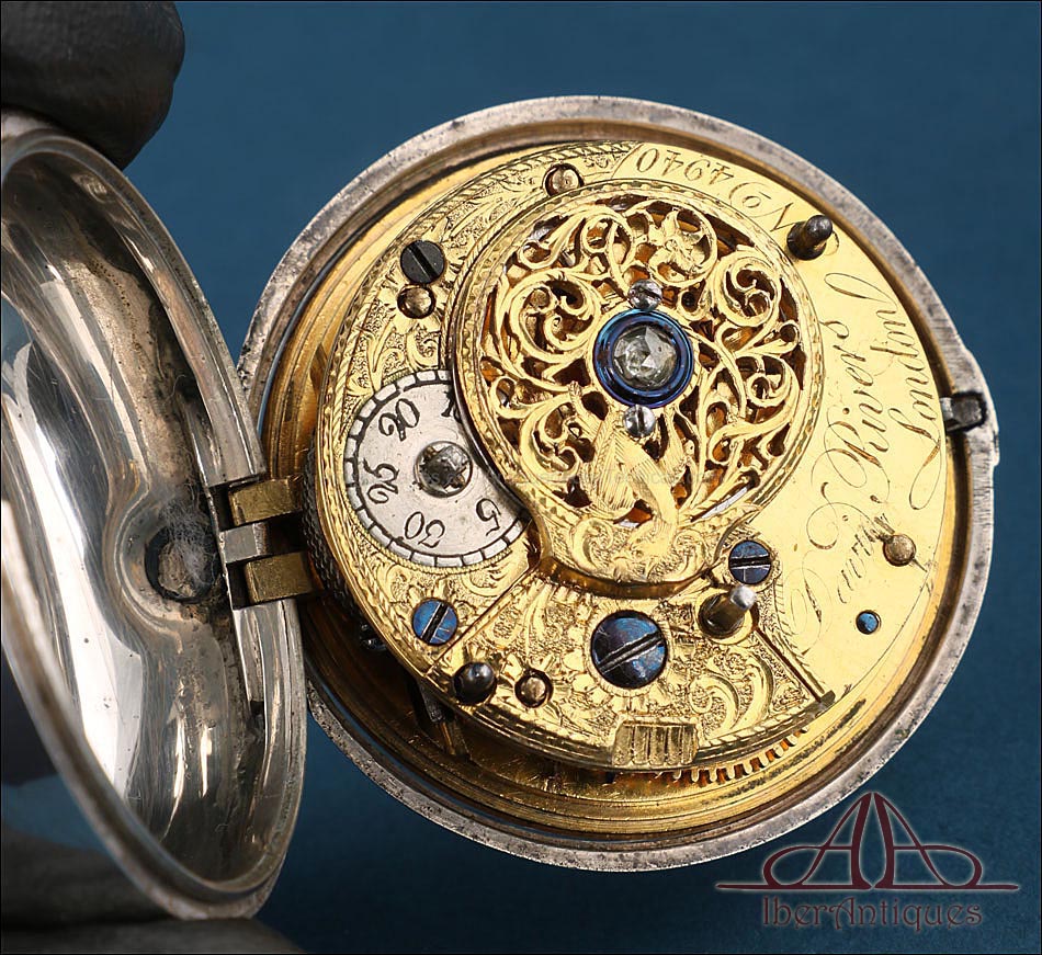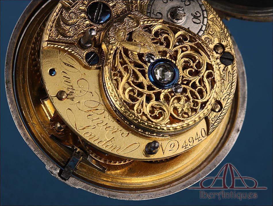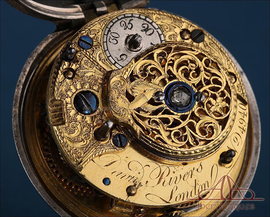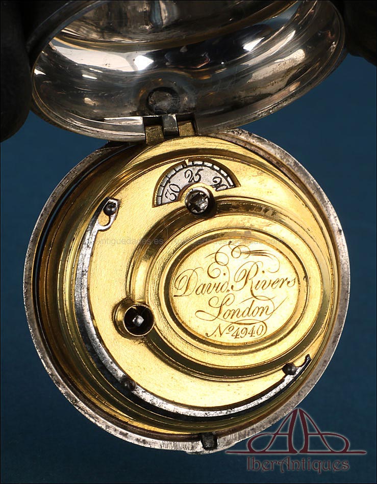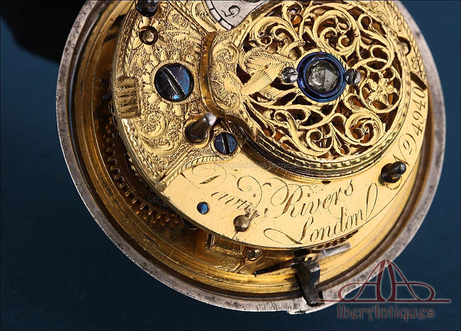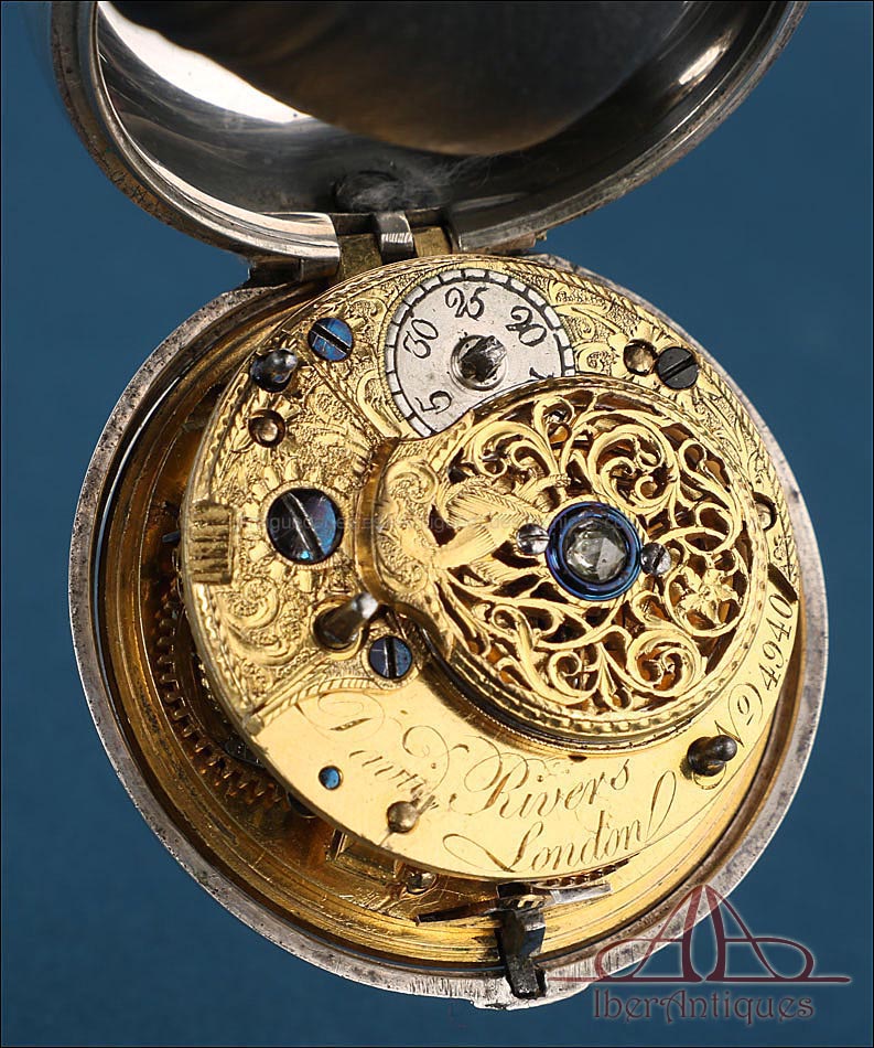 Antiguo Reloj de Bolsillo Catalino D. Rivers. Plata. Inglaterra, Londres, 1779 |