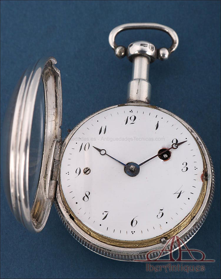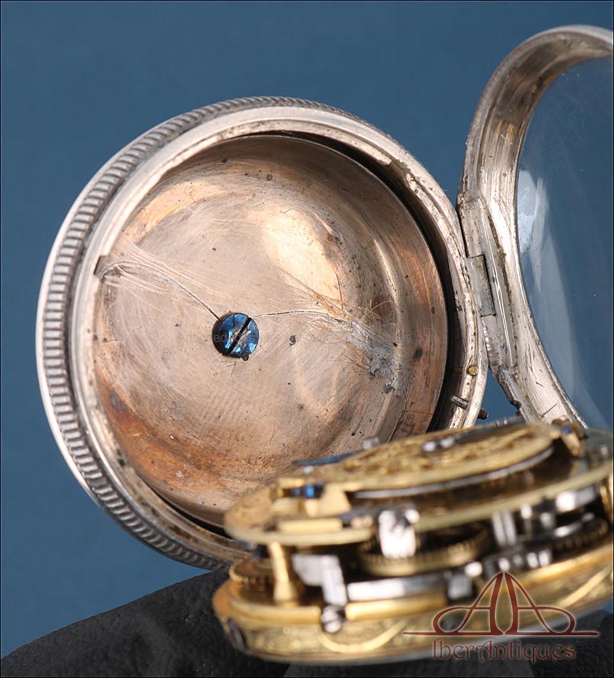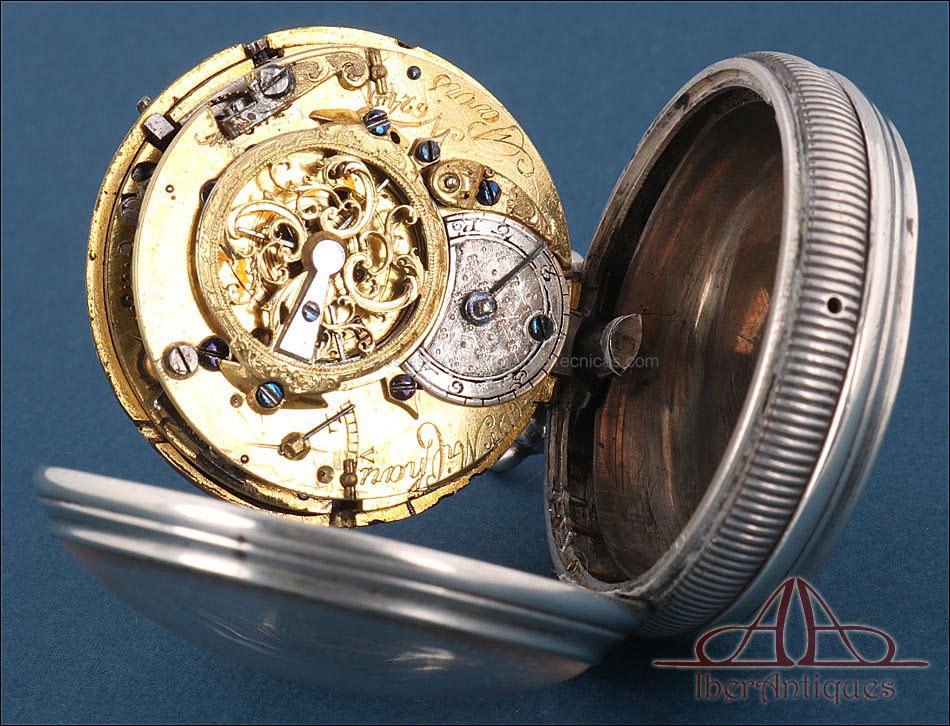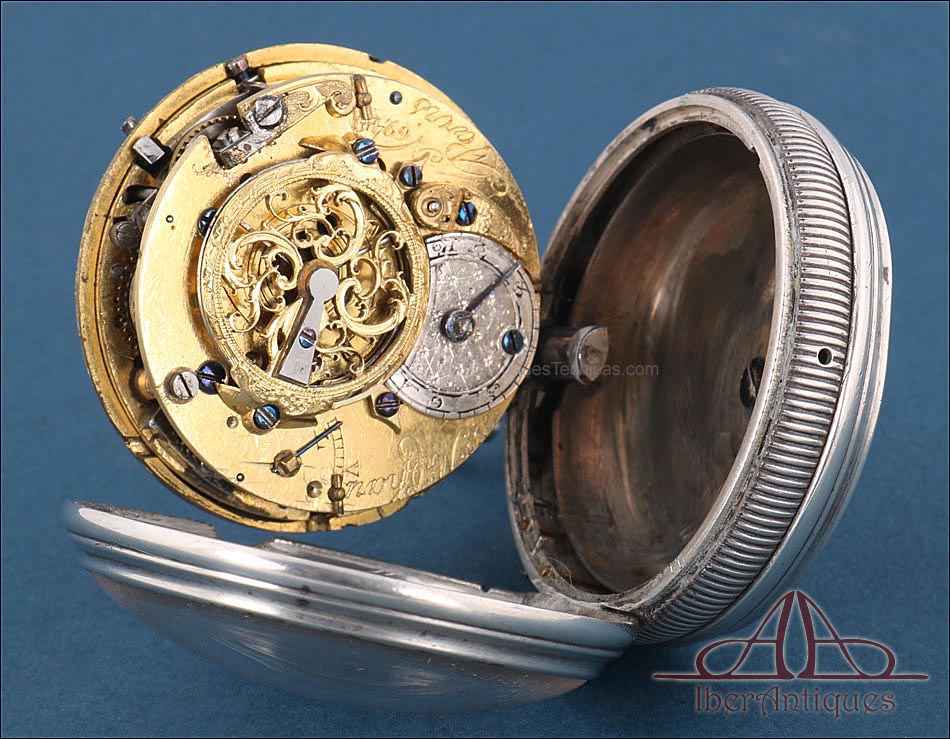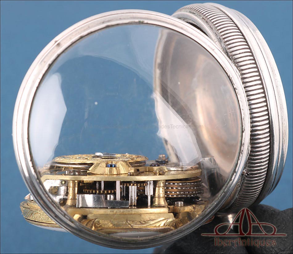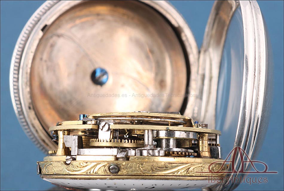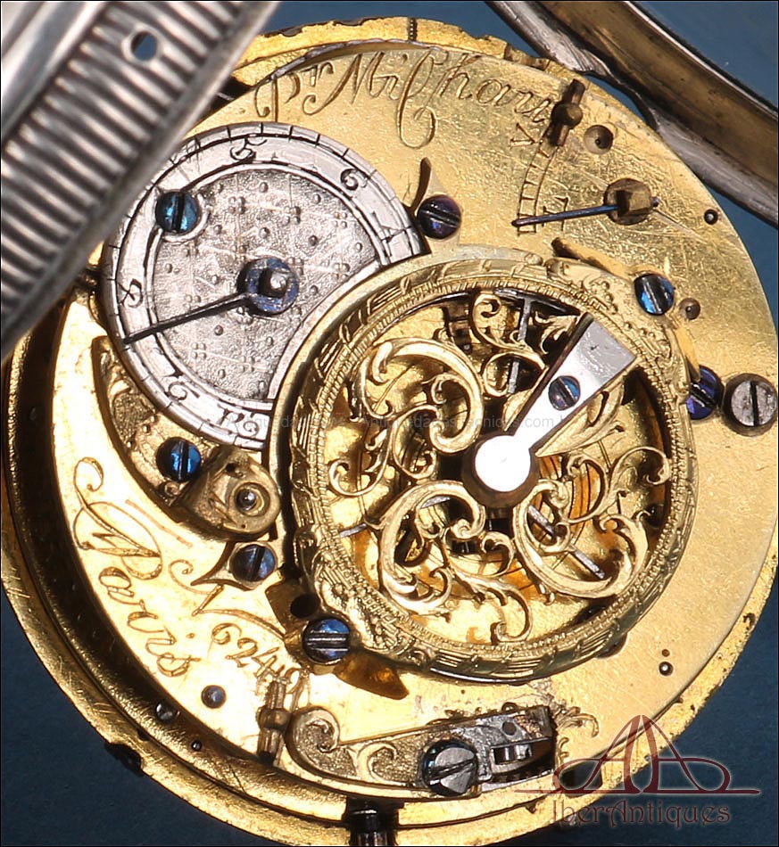 Antiguo Reloj de Bolsillo Catalino con Sonería de Cuartos. Pr. Michaud. París, Ca. 1760 |