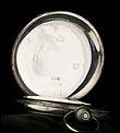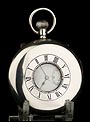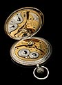 Al abrir la tapa delantera, hallamos el contraste de la plata de Birmingham claramente marcado junto a las iniciales ALD, correspondientes al renombrado fabricante de cajas Aaron Lufkin Dennison, socio fundador de Waltham. Dentro, la esfera esmaltada en blanco con numeración romana negra y agujas tipo poire conserva un excelente estado de conservación. El cristal original, sin grietas ni sustituciones, resguarda la belleza y nitidez del diseño. En la parte superior del dial, leemos con claridad el nombre de la marca: Waltham U.S.A., evidencia del origen norteamericano del movimiento.