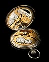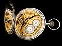 La tapa trasera, lisa y pulida como un espejo, realza la sobriedad del diseño. Al abrirla, observamos los mismos contrastes de autenticidad que en la frontal, así como el número de serie “29096” de la caja. Esta cubre y protege la magnífica maquinaria, donde se lee: “Am. Watch Co. – Waltham, Mass. – Bond St.”, junto con el número de serie del movimiento “17224294”. Este dato nos permite datar con precisión su fabricación alrededor del año 1912. El movimiento está limpio, completo y en pleno funcionamiento, señal de que ha sido bien cuidado y mantenido a lo largo de más de un siglo.