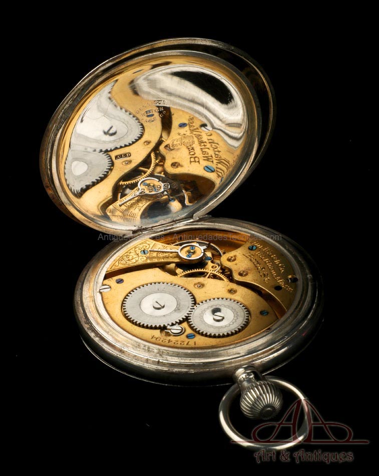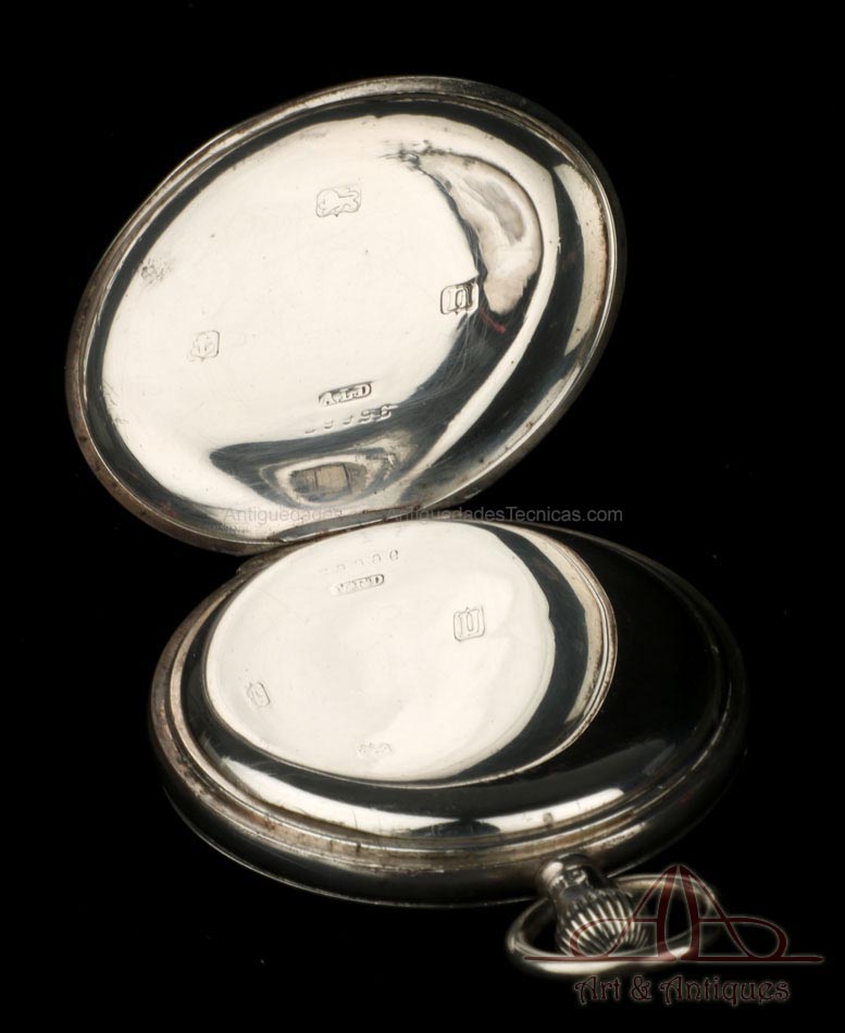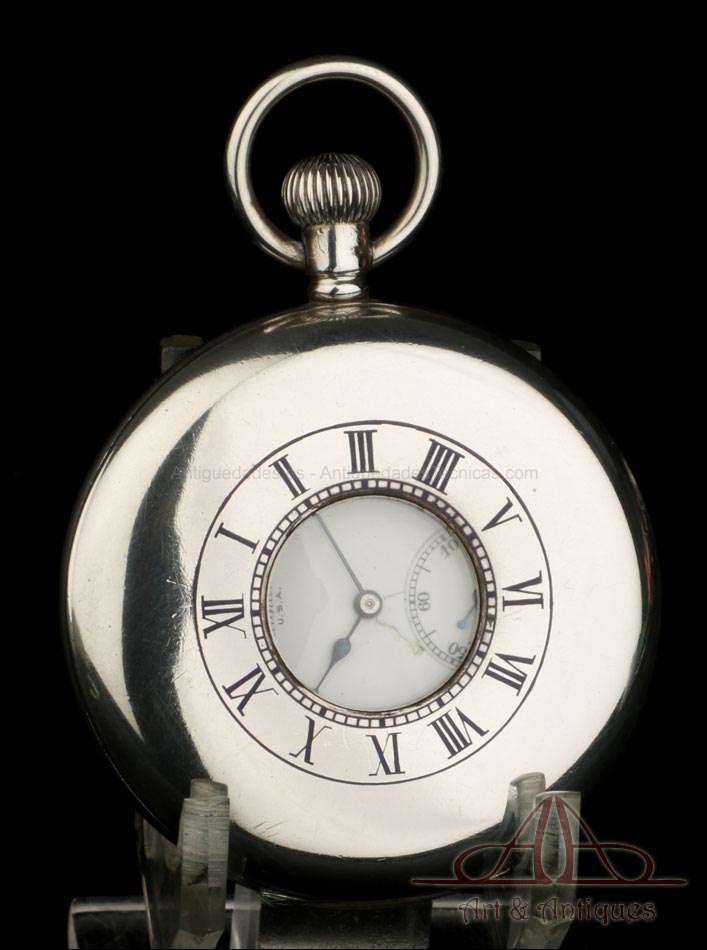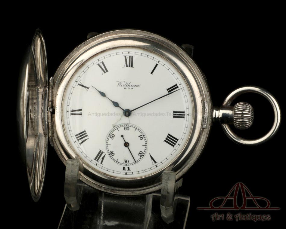 Antiguo Reloj de Bolsillo Waltham en Plata Maciza. USA-Inglaterra, 1912 |