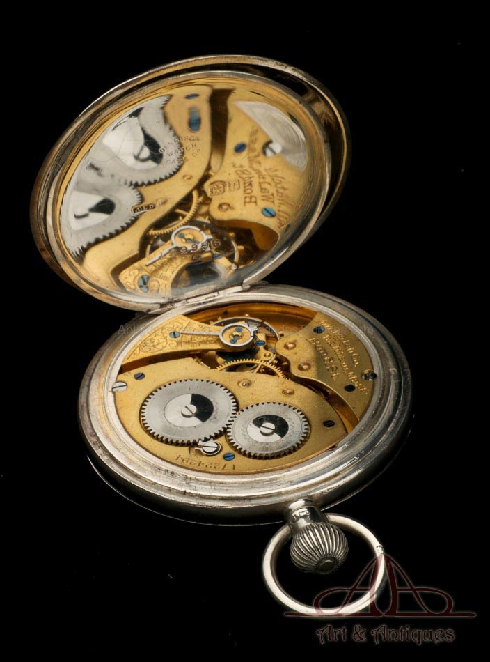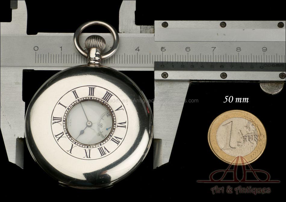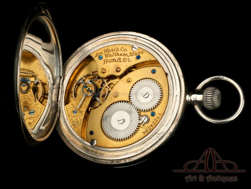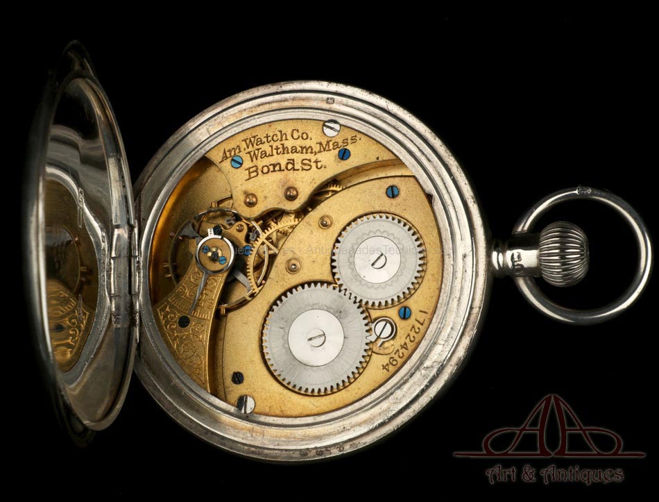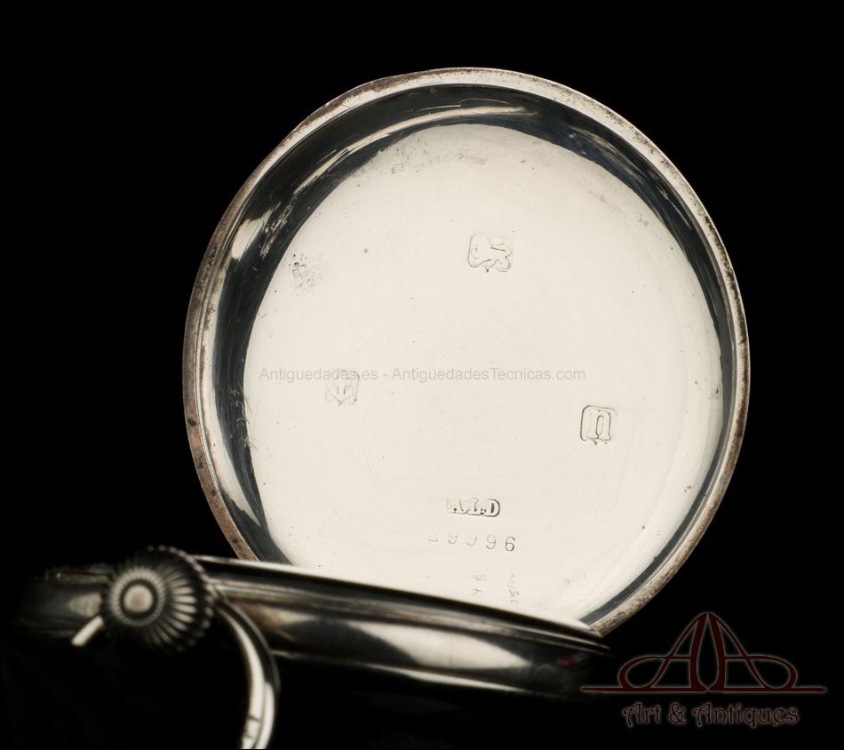 Antiguo Reloj de Bolsillo Waltham en Plata Maciza. USA-Inglaterra, 1912 |