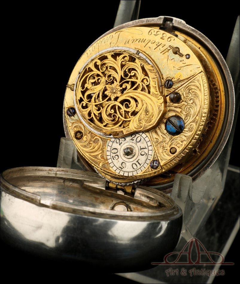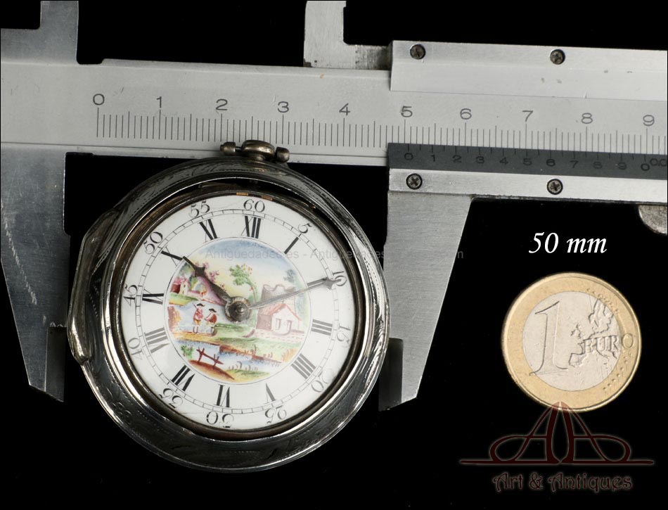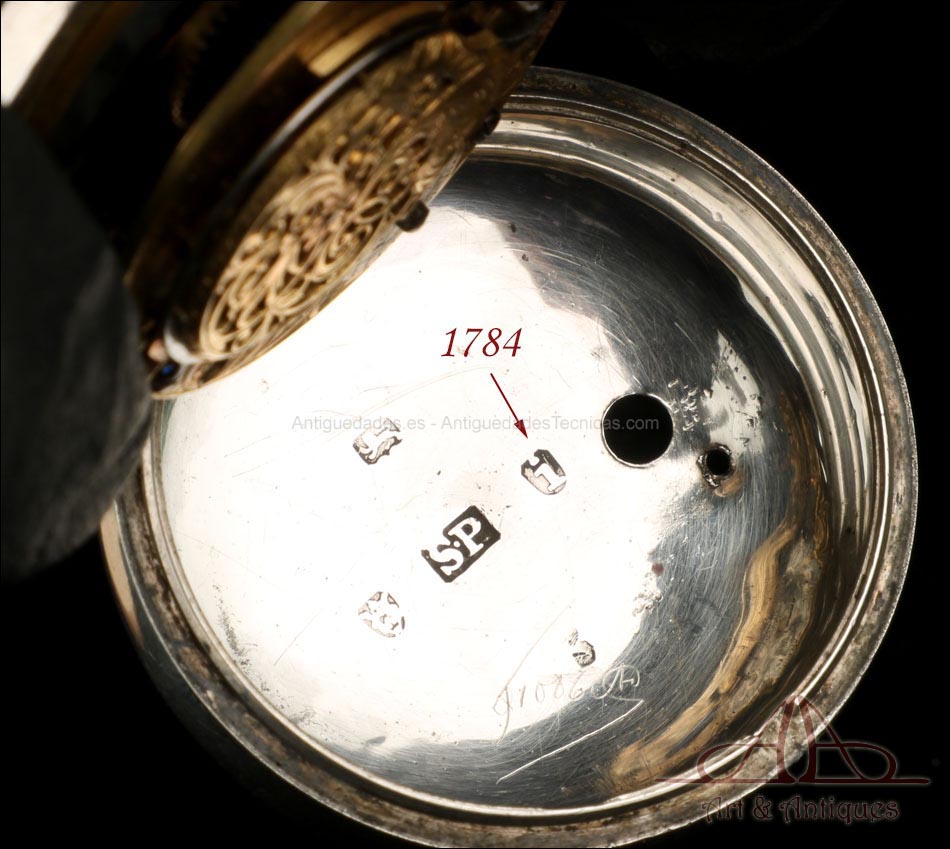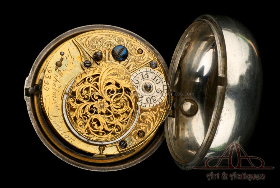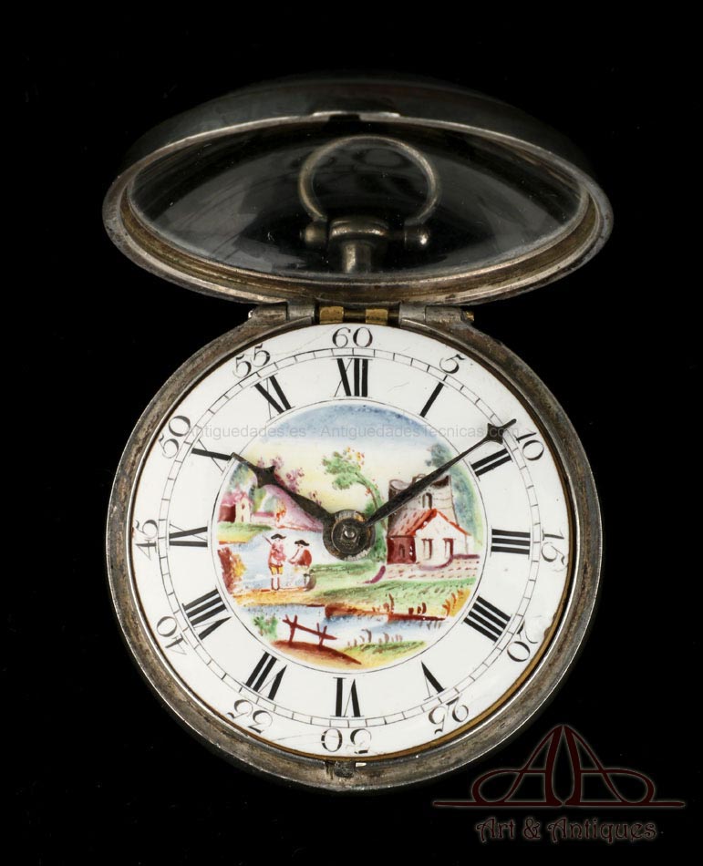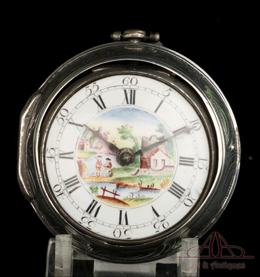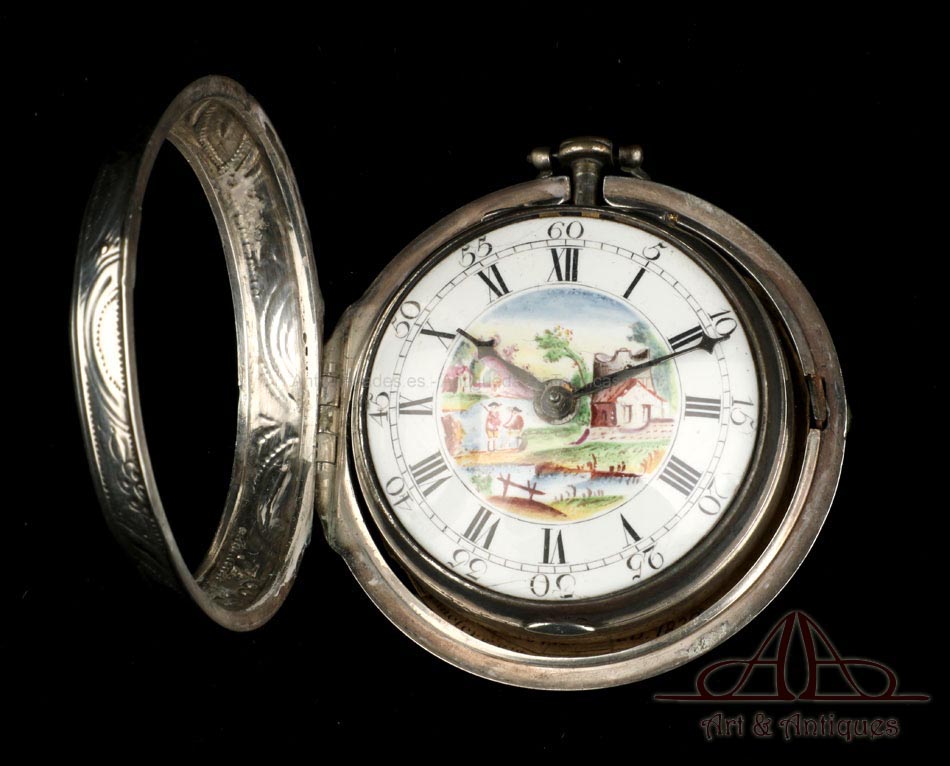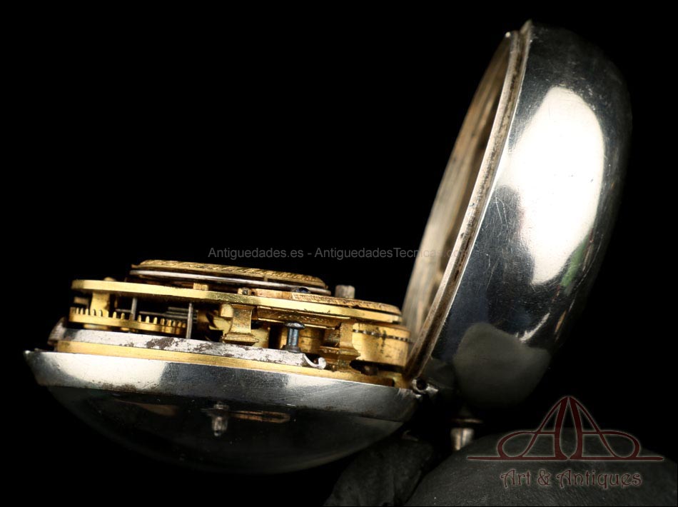 Antiguo Reloj de Bolsillo Catalino. Doble Caja de Plata. Londres, Inglaterra, 1784 |