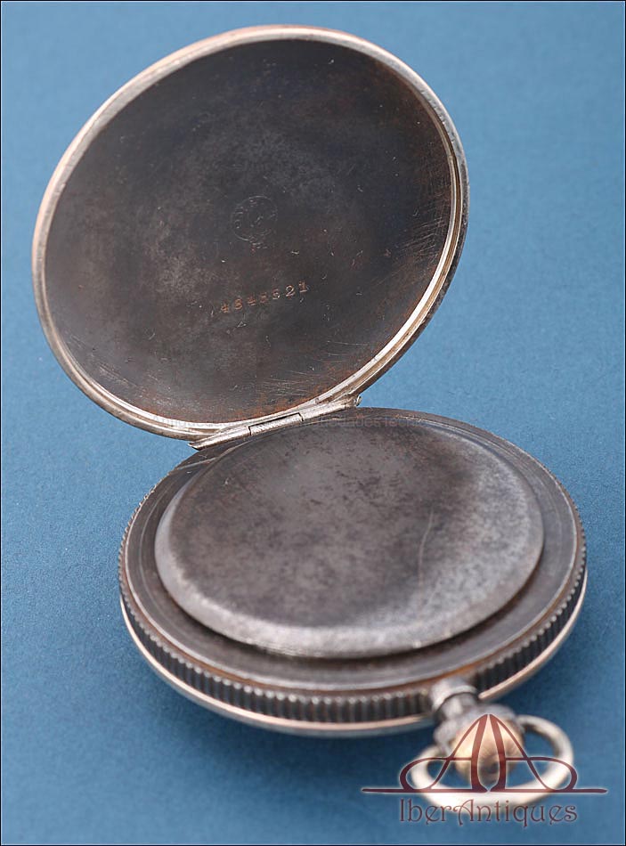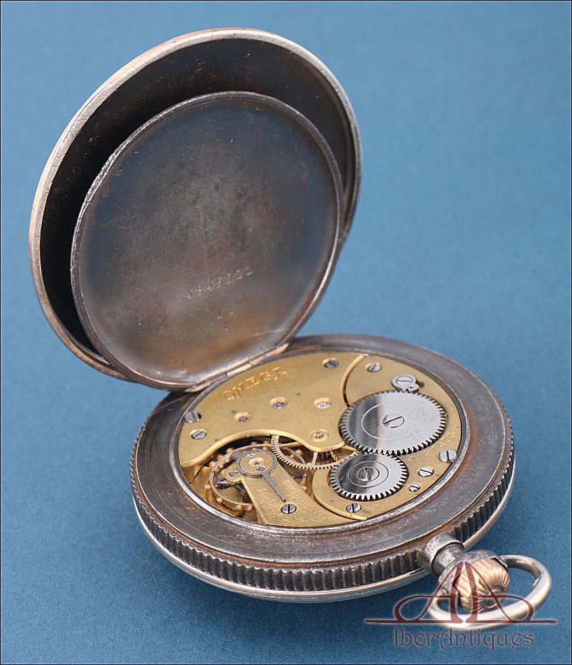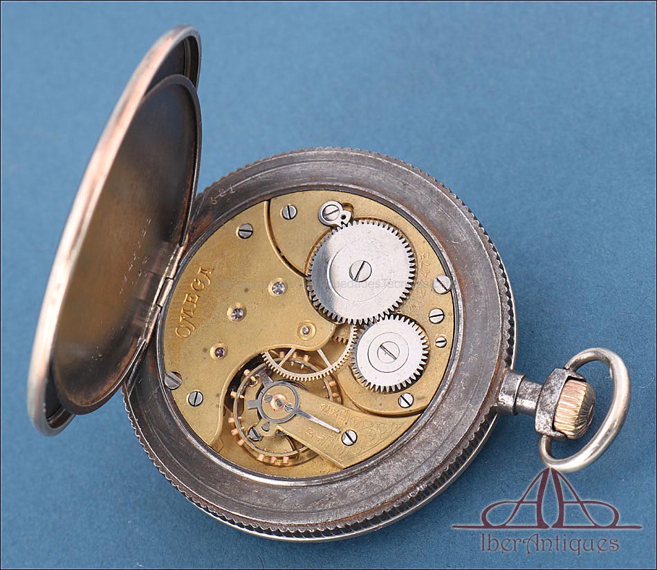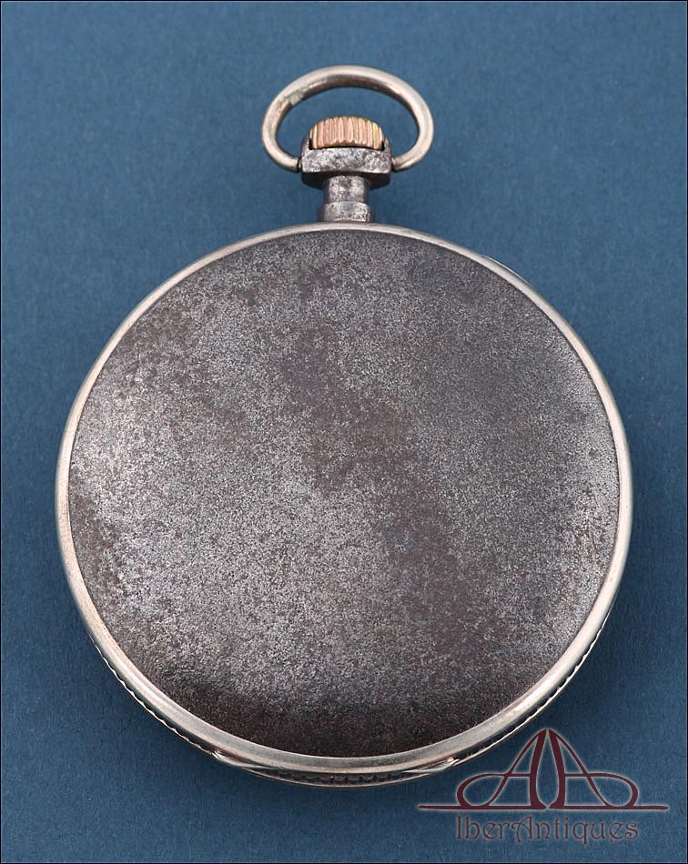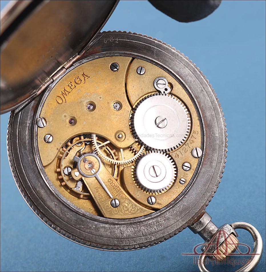 Antiguo Reloj de Bolsillo Omega en Acero Pavonado. Suiza, Circa 1920 |