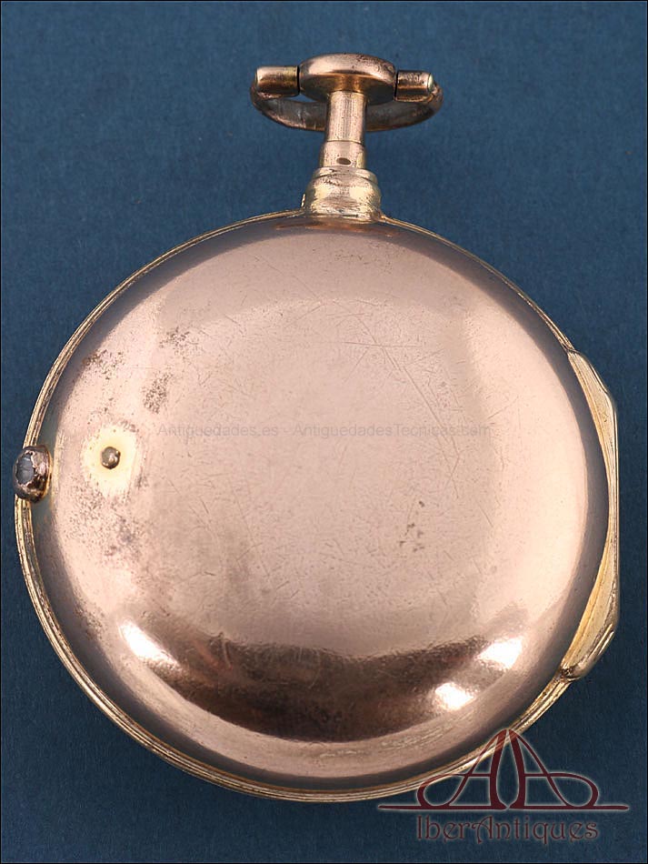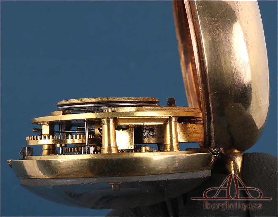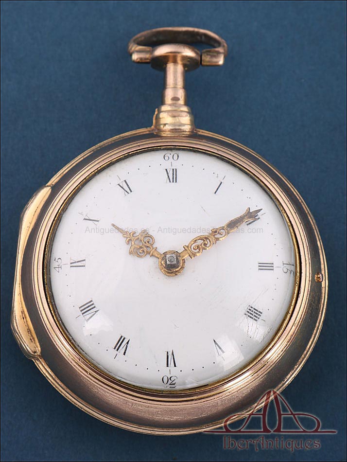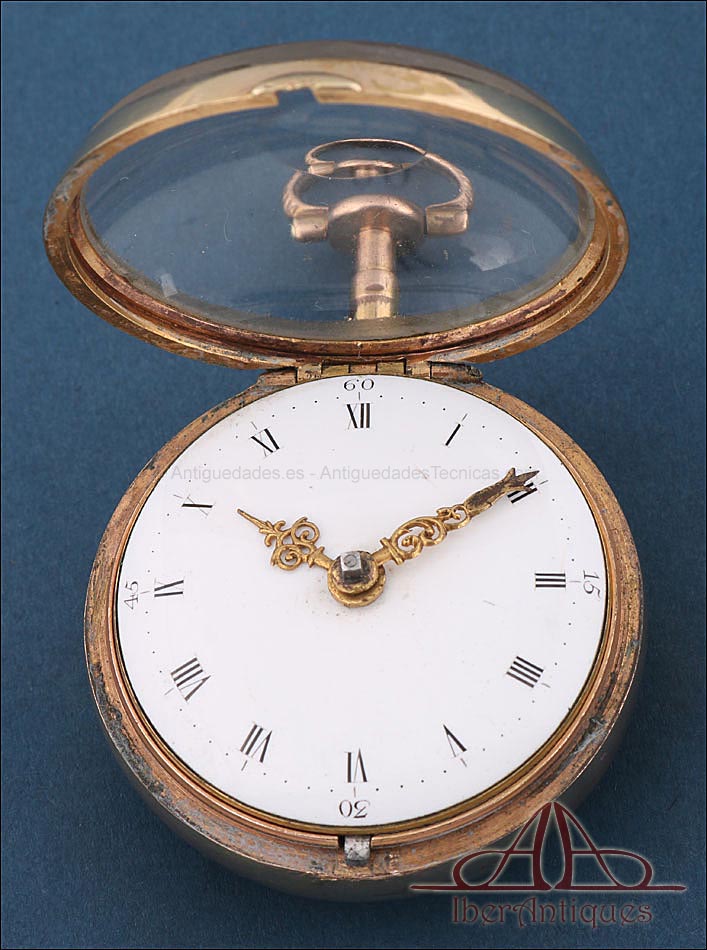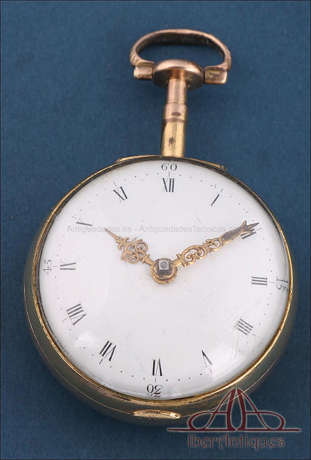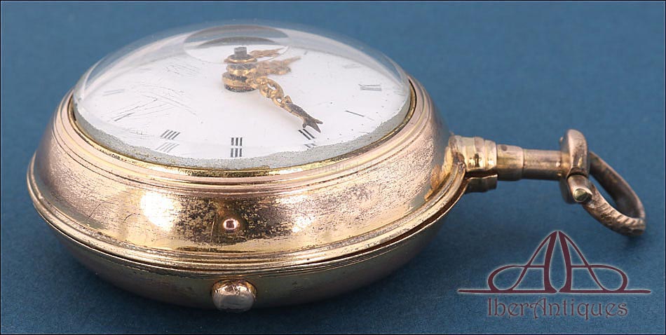 Antiguo Reloj de Bolsillo Catalino. 2 Cajas Metal Dorado. John Eiveu, Londres, 1789 |