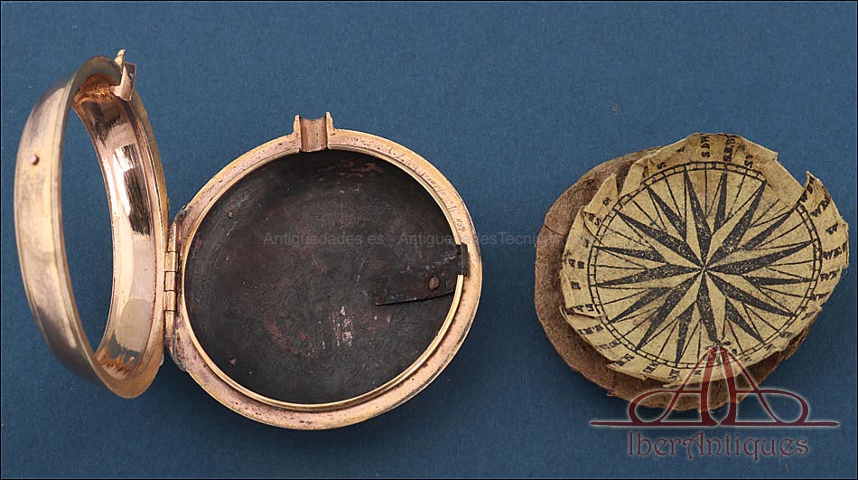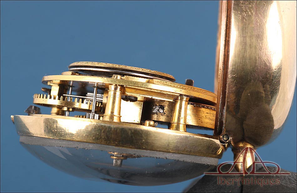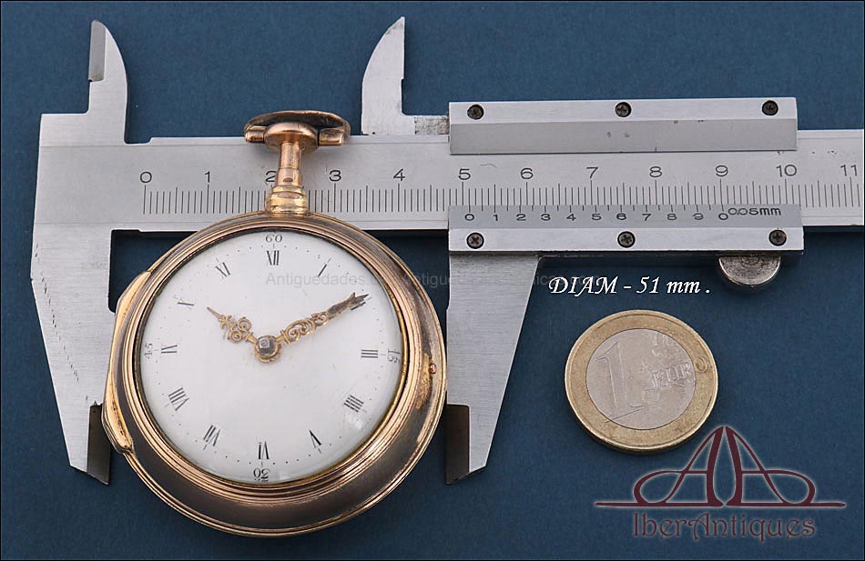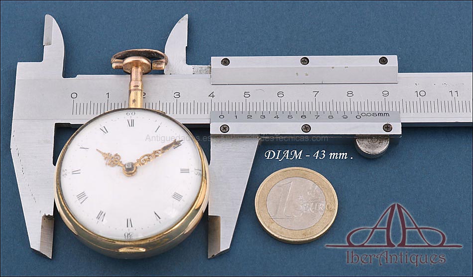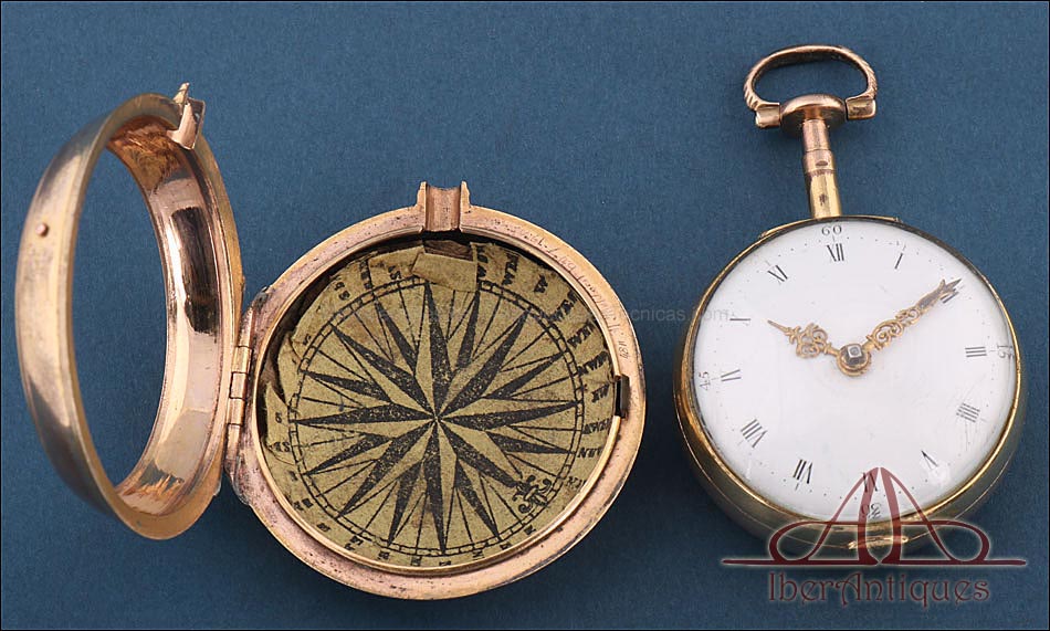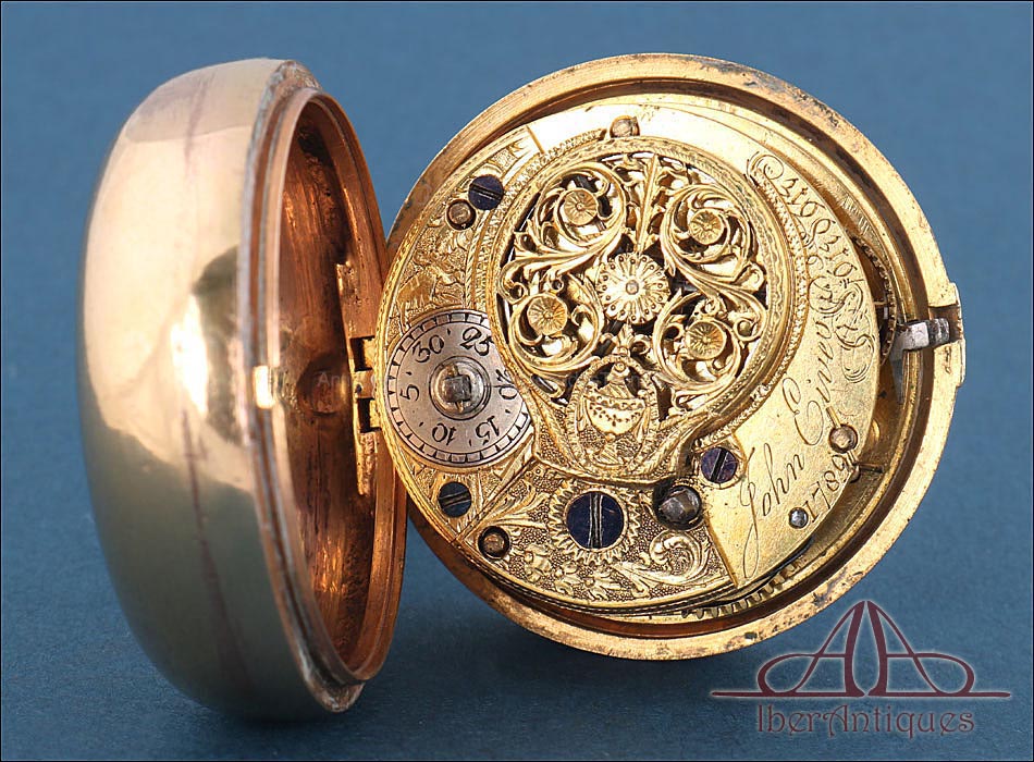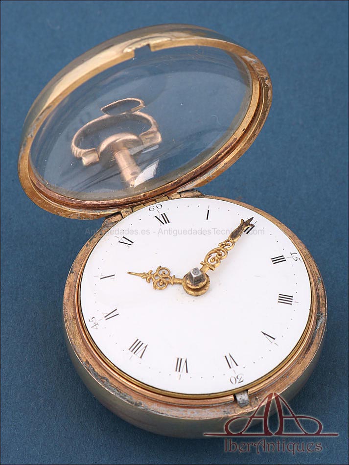 Antiguo Reloj de Bolsillo Catalino. 2 Cajas Metal Dorado. John Eiveu, Londres, 1789 |