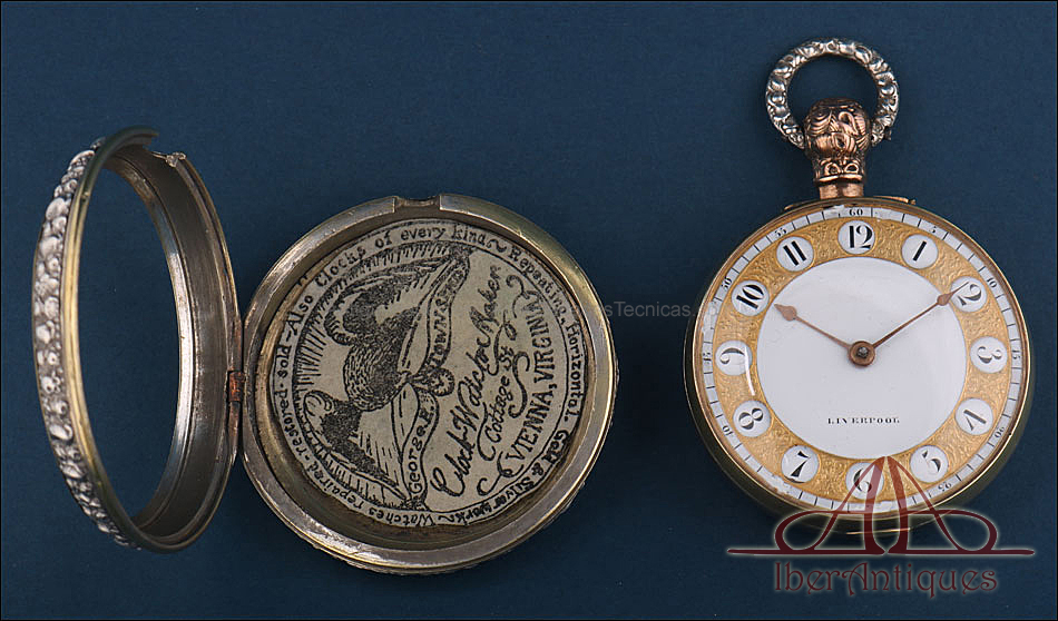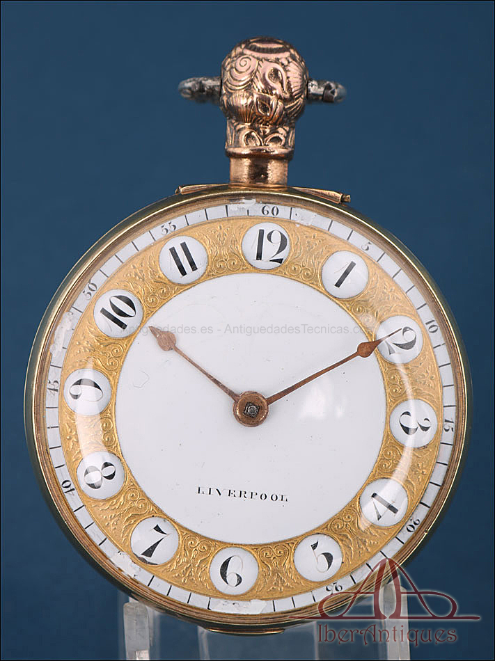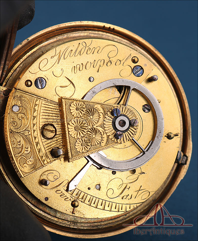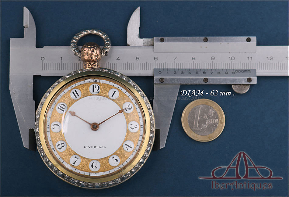 Fantástico Reloj de Bolsillo Catalino Antiguo. Plata. 62 mm. Milden, Liverpool, UK, 1835 |