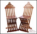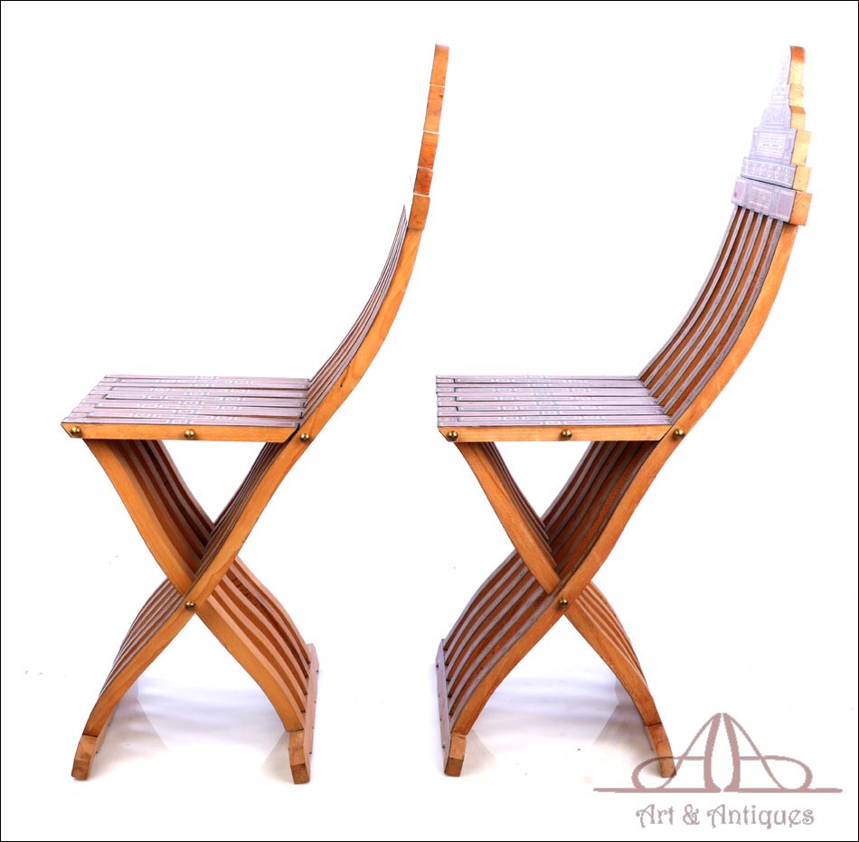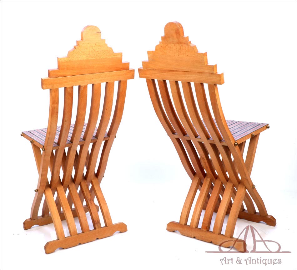 Antigua Pareja de Sillas de Tijera con Marquetería. Med. S. XX |