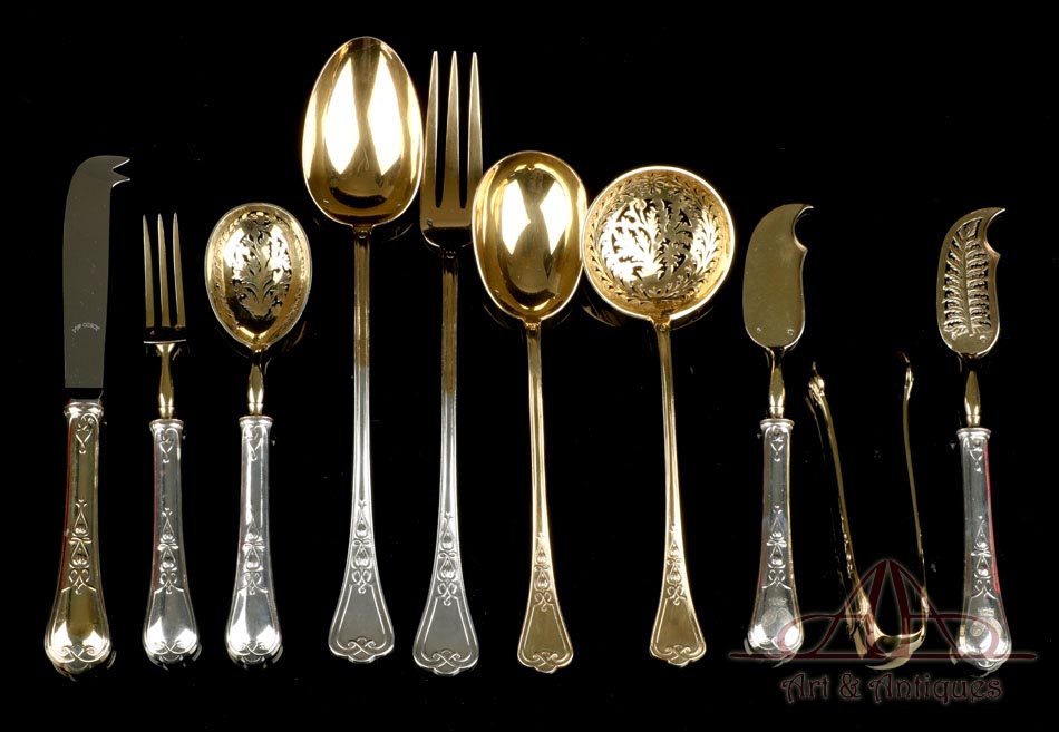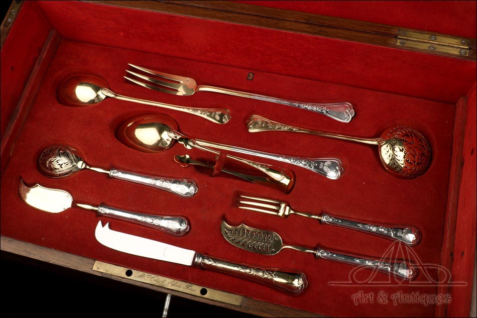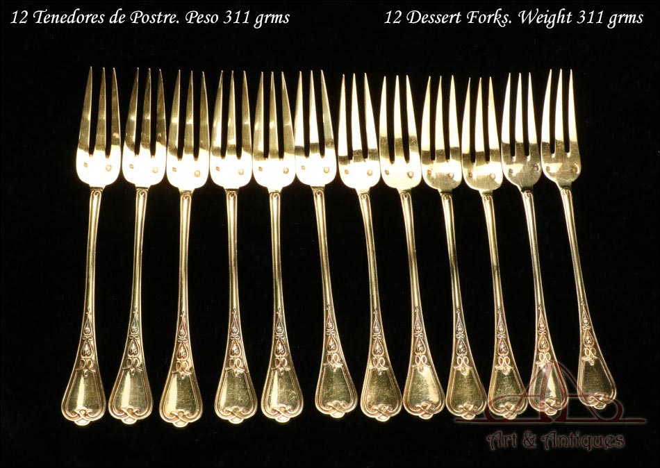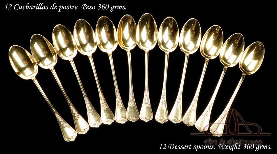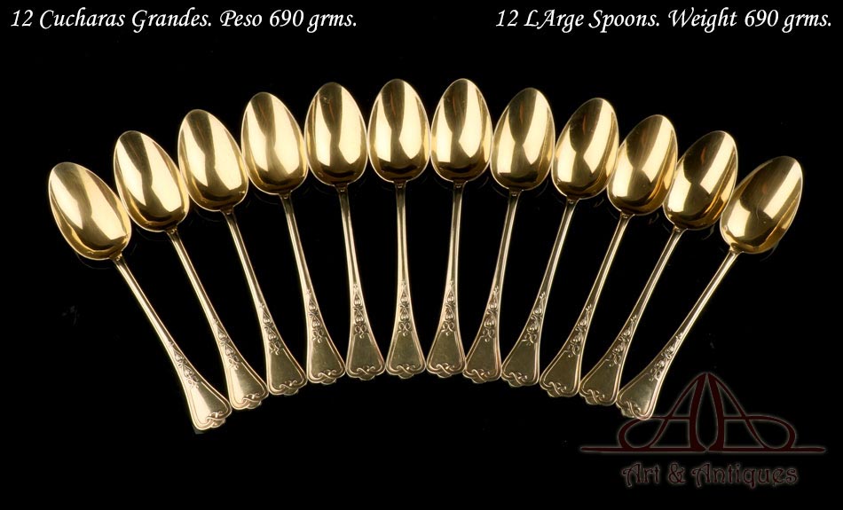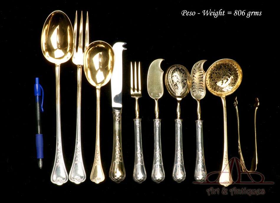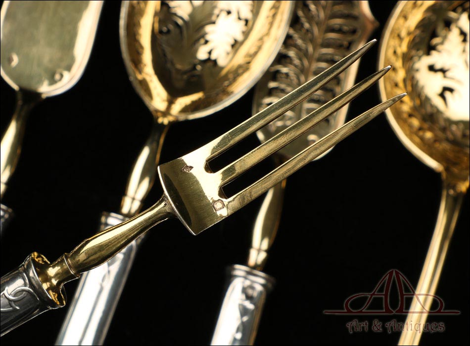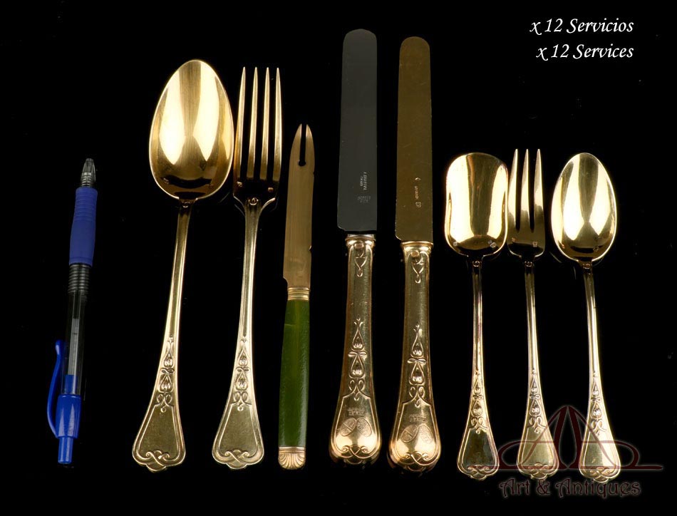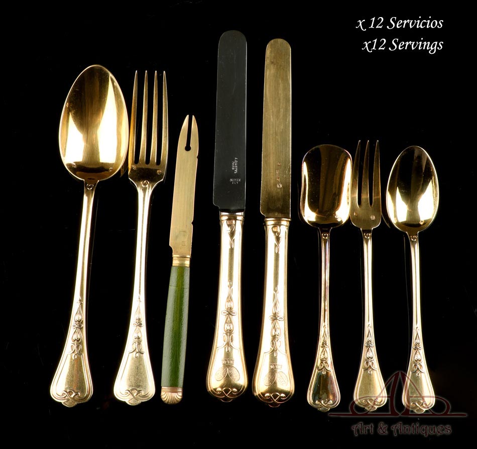 Espectacular Cubertería Antigua de Plata Dorada de Odiot. París, Circa 1900 |