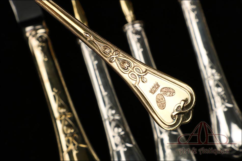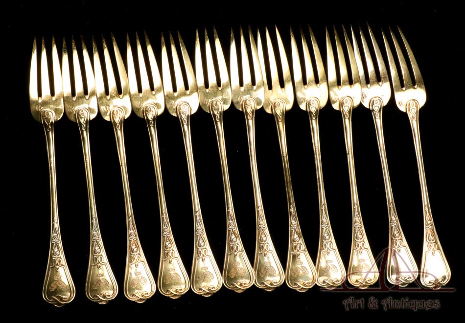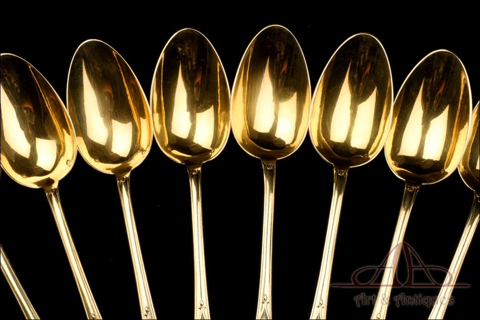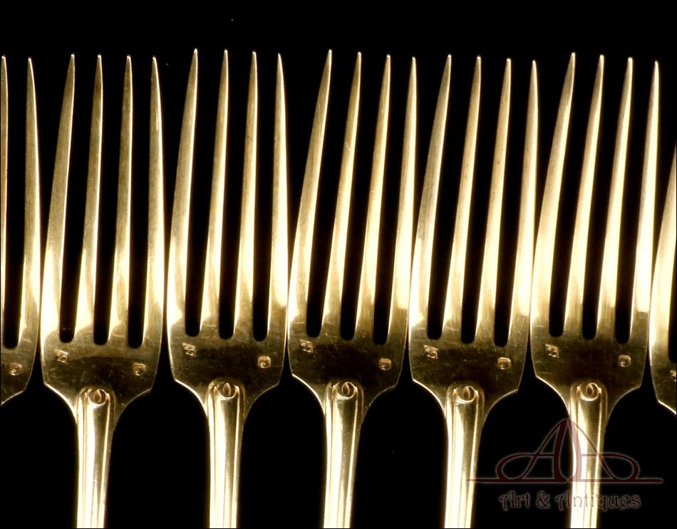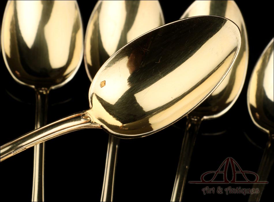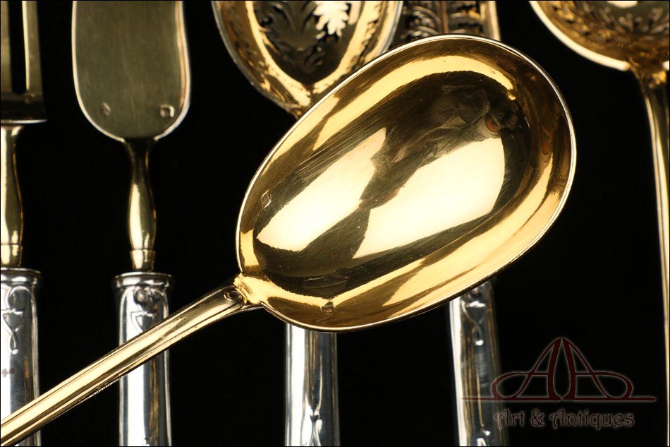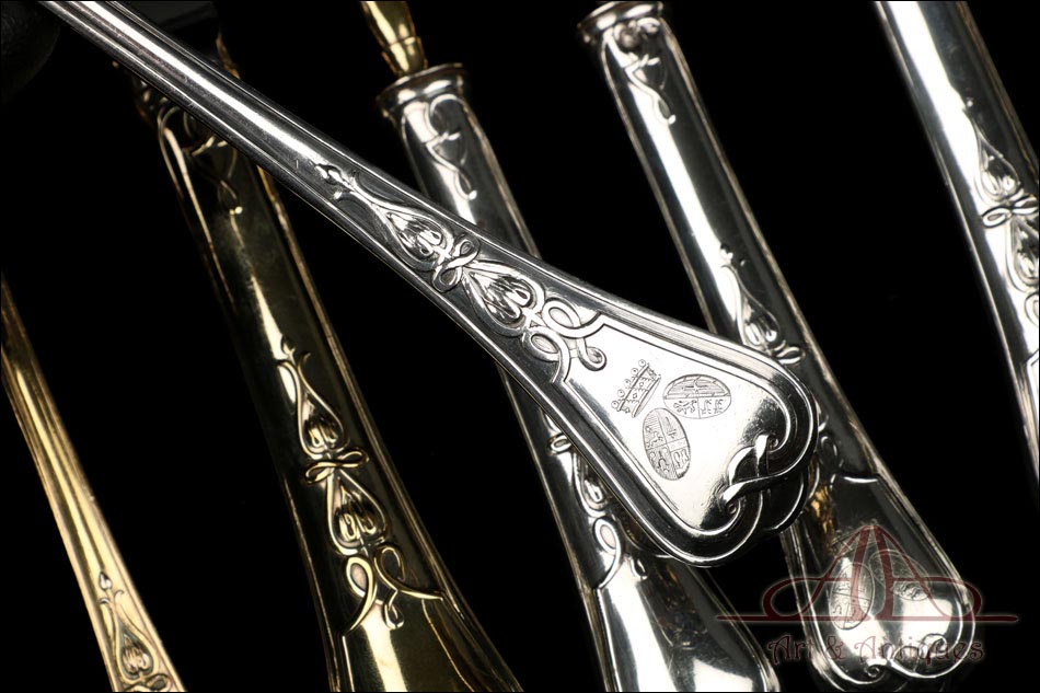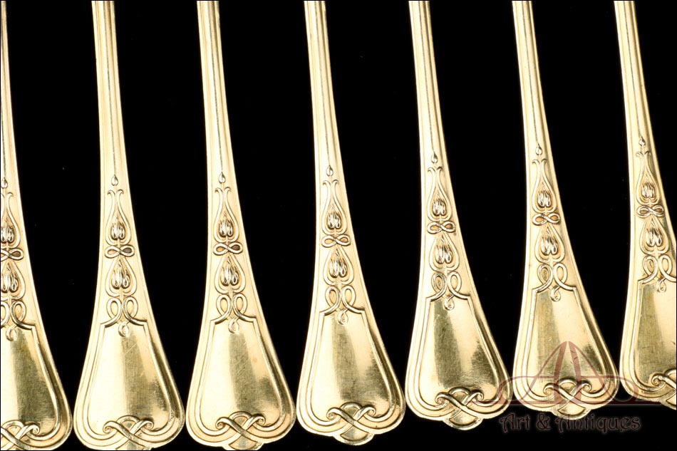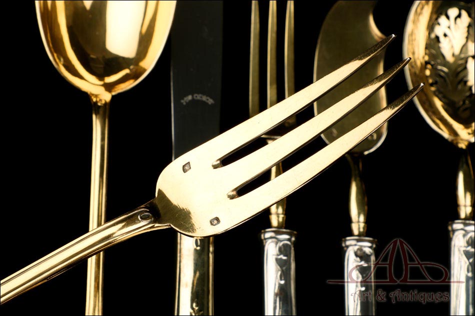 Espectacular Cubertería Antigua de Plata Dorada de Odiot. París, Circa 1900 |