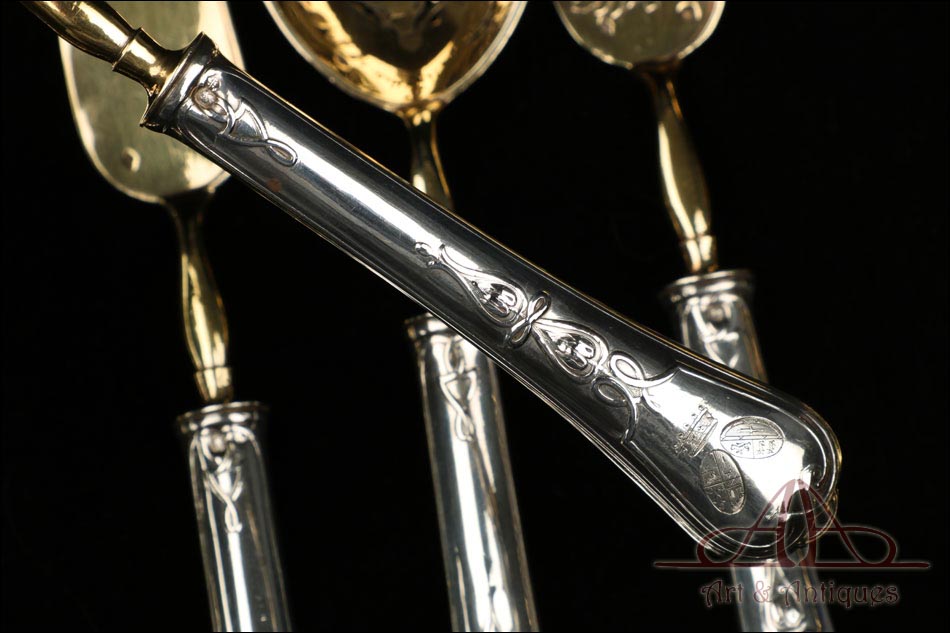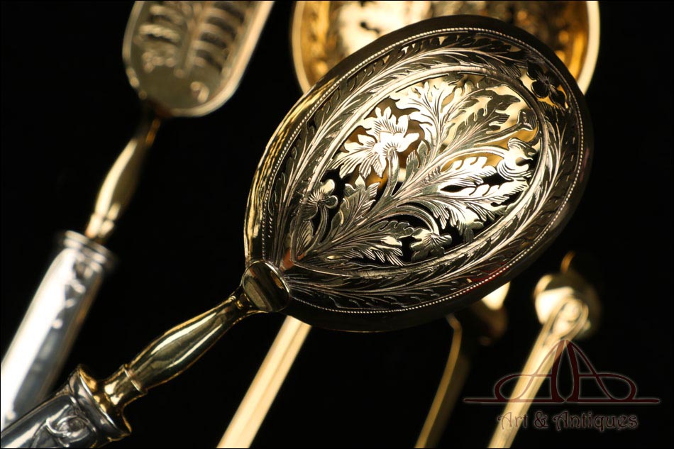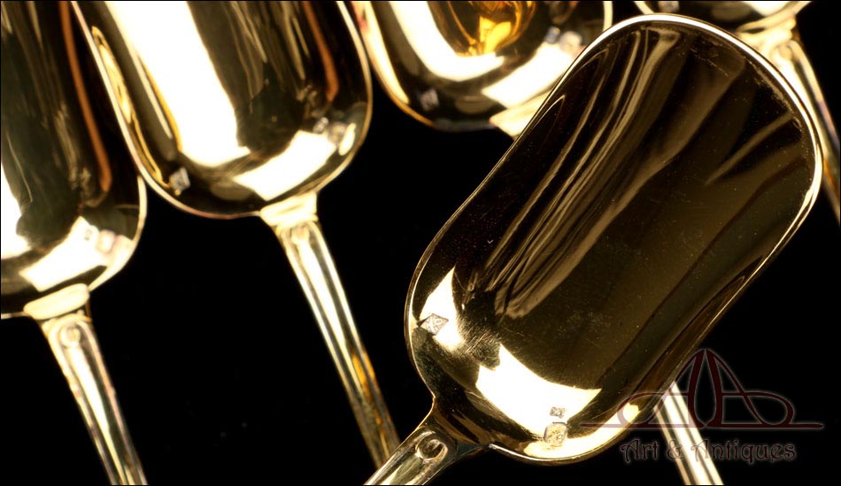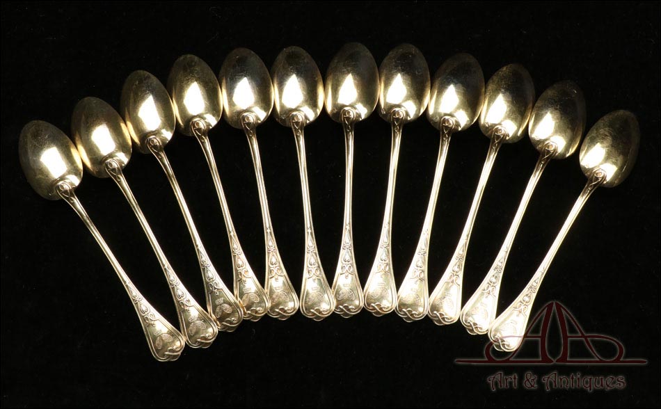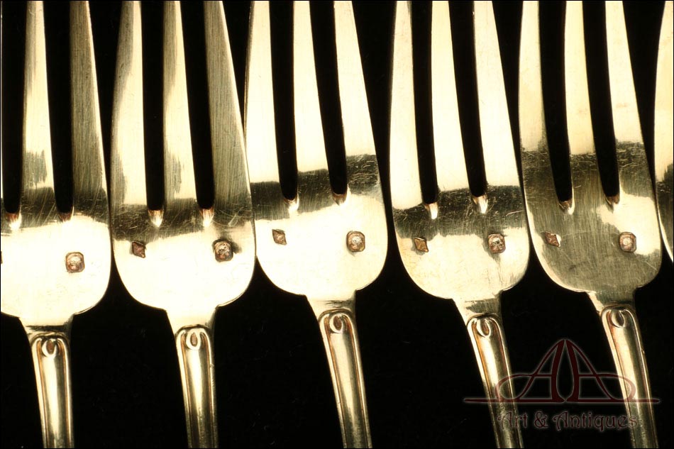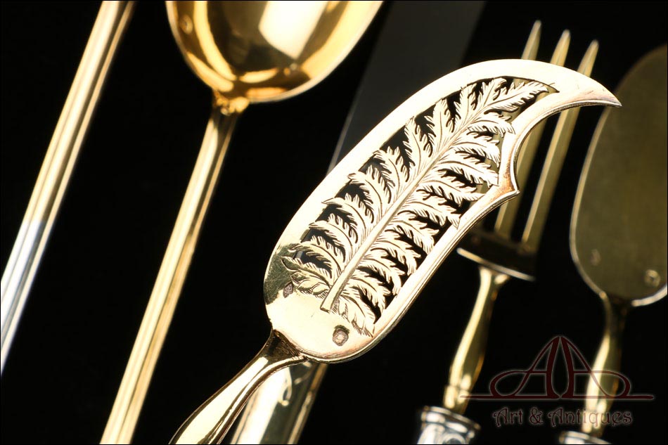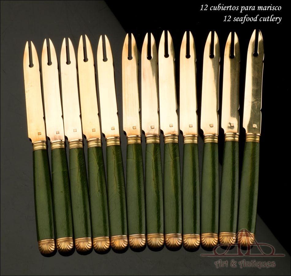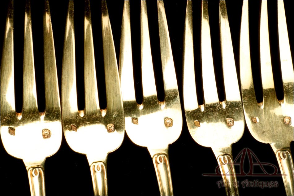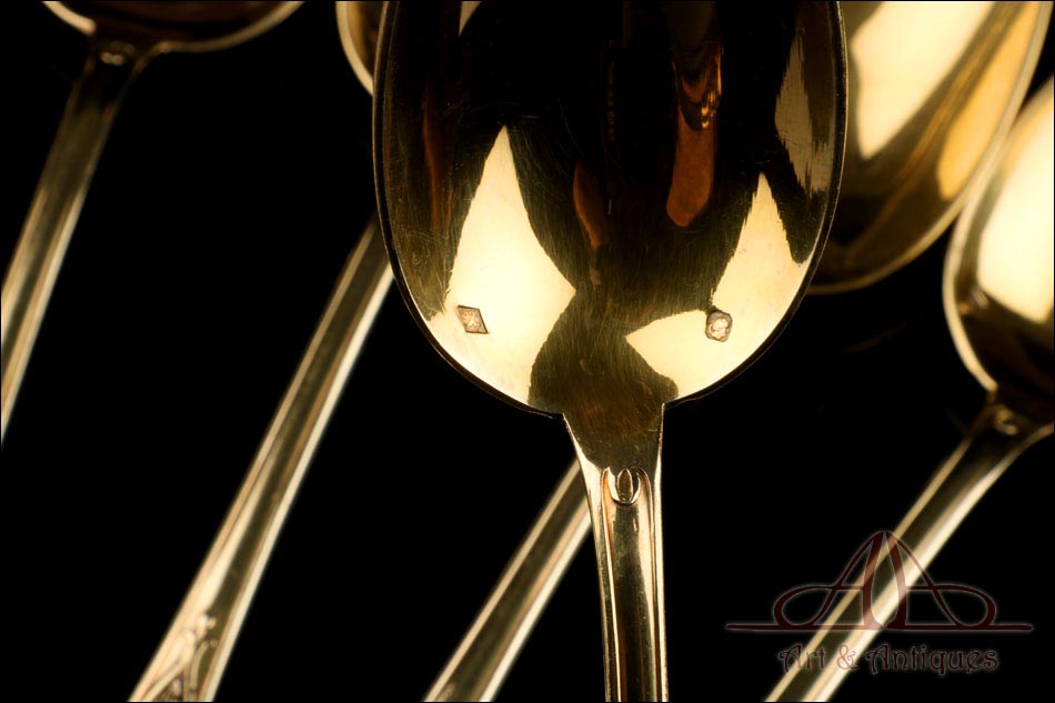 Espectacular Cubertería Antigua de Plata Dorada de Odiot. París, Circa 1900 |