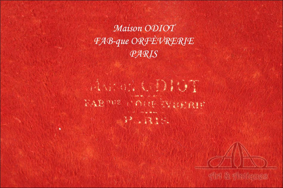 La casa de orfebrería Odiot fue fundada en París en 1690 por Jean Baptiste Gaspar Odiot, siendo una de las más prestigiosas del mundo desde el reinado de Luis XV hasta nuestros días. Jean Baptiste estaba reconocido como uno de los mejores orfebres de su tiempo, y continuó siéndolo en el siglo XVIII tras pasar a ser proveedor oficial de la Casa Real por sus espectaculares creaciones y su talento. Su nieto, Jean-Baptiste Claude Odiot, elevó el prestigio de la casa durante el Imperio; es en esta época cuando la casa realiza sus piezas más espectaculares, como la Cuna del Rey de Roma o el Servicio de Campaña del Emperador. La tradición fue continuada por Charles Nicolas Odiot, que se convirtió en orfebre proveedor oficial del rey Luis Felipe y su familia. En esta época, las obras de la firma deslumbraron por su recuperación del estilo rococó y expandieron la fama de la casa, cuyos servicios fueron solicitados por las familias más poderosas de la época. A día de hoy, la casa Odiot sigue activa y mantiene sus estándares de calidad y su prestigio mundial.