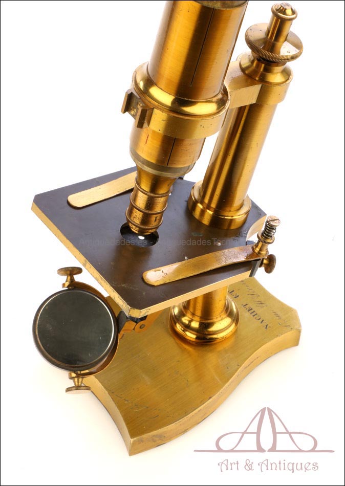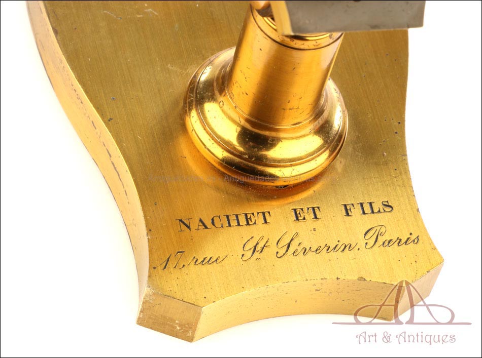 Antiguo Microscopio Nachet Modelo Moyen nº 9. Francia, Circa 1890 |