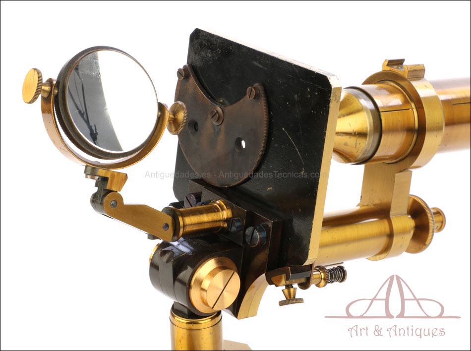 Los amantes de los instrumentos científicos de época sabrán apreciar la belleza y la funcionalidad de este antiguo microscopio Nachet modelo Moyen nº 9, un artículo tan raro como atractivo.