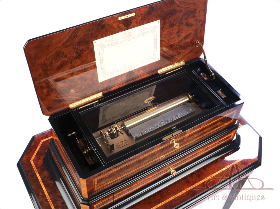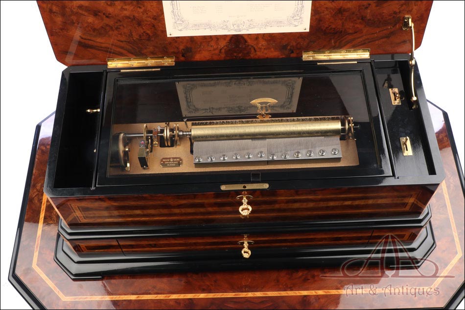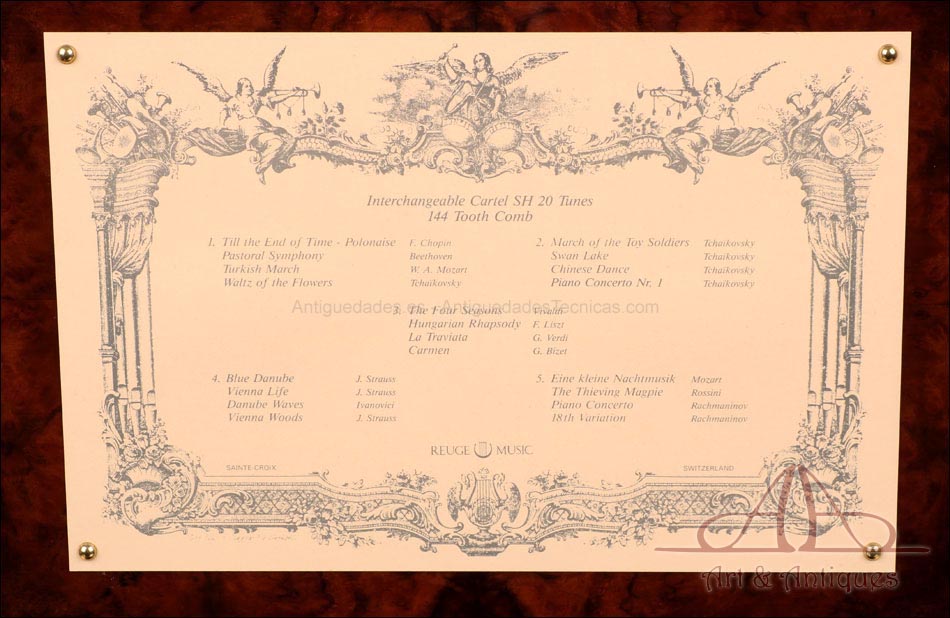 Espectacular Caja de Música Reuge Grand Cartel Intercambiable de 144 Notas. Suiza |