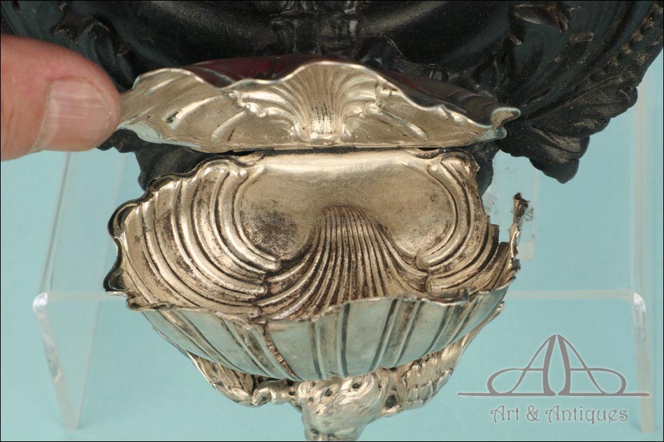 Los benditeros domésticos fueron elementos devocionales comunes entre los siglos XVII y XX. Solían colocarse en la entrada de las casas, permitiendo al creyente persignarse al entrar o salir del hogar. Esta práctica invocaba la protección divina mediante el agua bendita. En el siglo XIX, en pleno renacer del fervor religioso, estas piezas alcanzaron un alto nivel artístico. Francia se convirtió en uno de los centros de producción más refinados. Las familias adineradas encargaban benditeros en bronce, marfil o plata, como el que presentamos aquí.