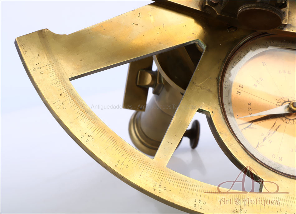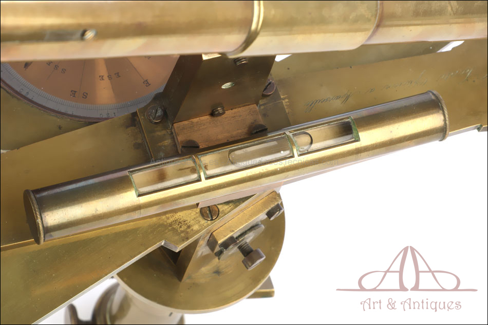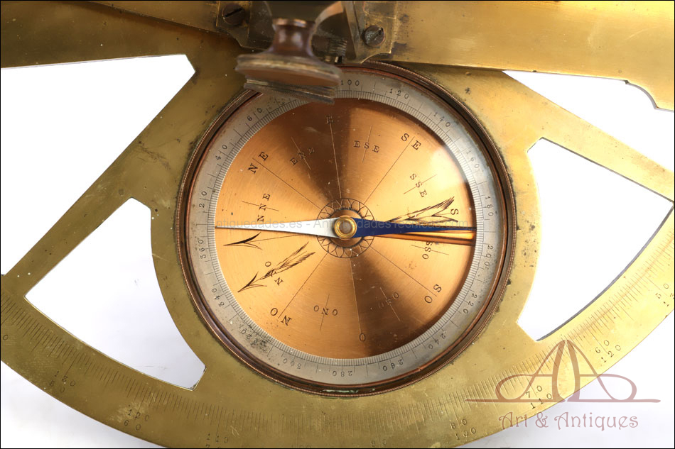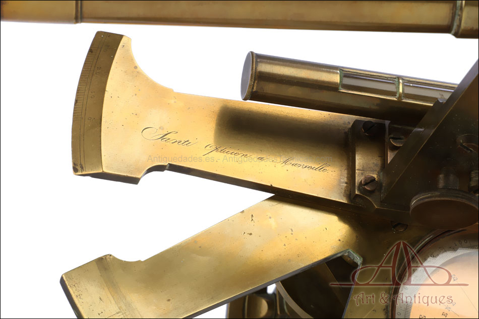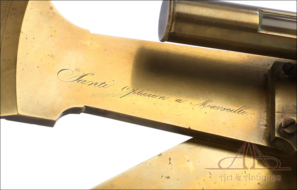 Antiguo grafómetro de arquitecto Santi fabricado en Marsella, Francia, en el siglo XIX (circa 1840). Este precioso instrumento de medición topográfica se encuentra en muy buen estado, a pesar de tener más de siglo y medio de uso a sus espaldas. El grafómetro incluye una brújula y lleva la inscripción grabada a mano ‘Santi – Opticien a Marseille’ (Sánti – Óptico de Marsella). La casa A. Santi se fundó en la localidad francesa en 1830 para la fabricación de instrumentos ópticos, marinos y geodésicos. La calidad de sus productos hizo que obtuviera medallas de 1ª Clase en las exposiciones universales de París, Marsella y Londres. Este precioso grafómetro es una buena muestra de la excelencia de sus instrumentos.