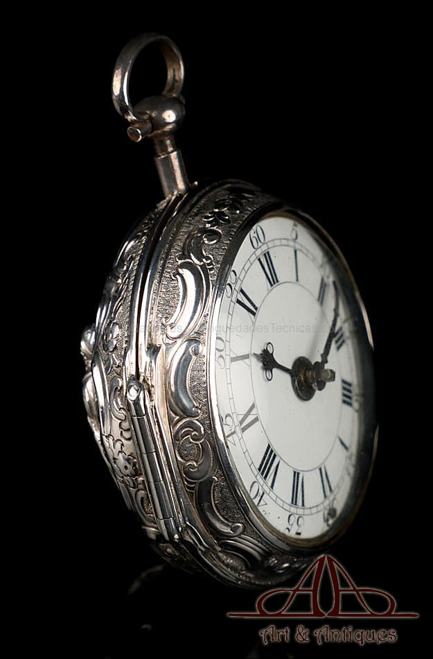 Reloj de Bolsillo Catalino de Plata. James Cowan. Edimburgo, Escocia, Circa 1760 |
