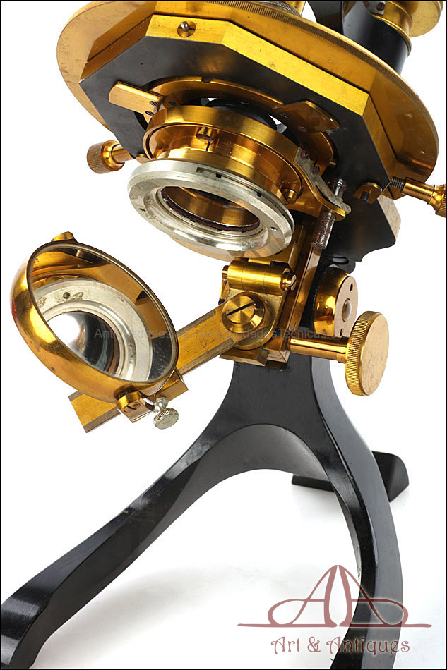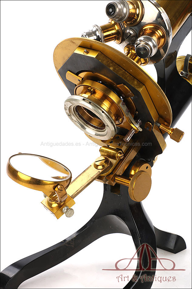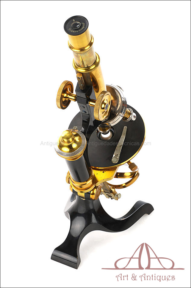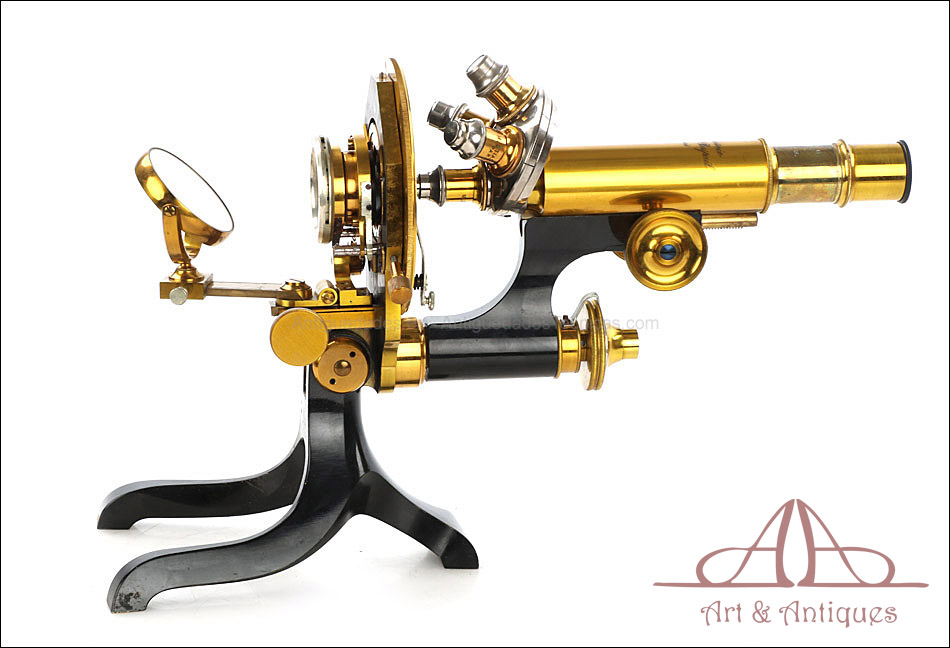 Espectacular Microscopio Antiguo Stiassnie. Francia, Circa 1890 |