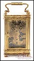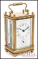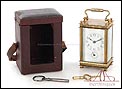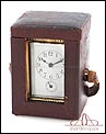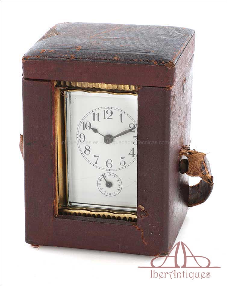 Durante el siglo XIX, estos relojes se convirtieron en accesorios imprescindibles para los oficiales militares, comerciantes de alto rango y aristócratas que viajaban en diligencia. Por ello, se les dotaba de estuches protectores de cuero con ventanas frontales, como el que acompaña a este ejemplar. Los relojes de carruaje son además testimonio del refinamiento técnico de la relojería francesa, donde destacan casas como Japy Frères, Drocourt, o Le Roy, entre muchas otras.