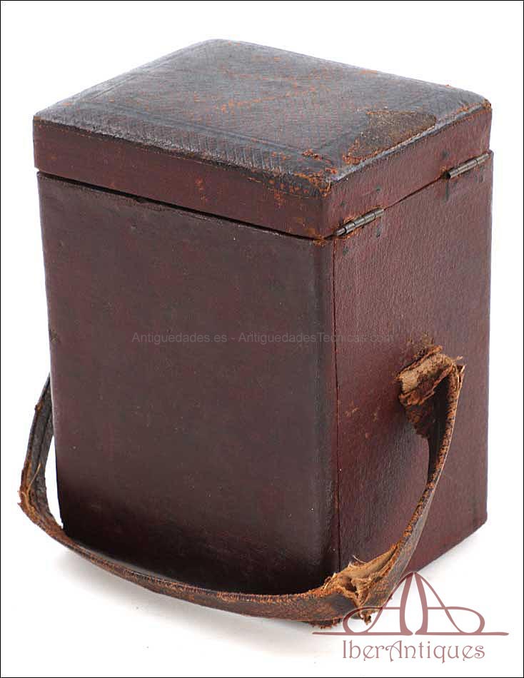 El reloj viene acompañado de su estuche de cuero original con tapa superior, abertura frontal y correa de transporte. Aunque el cuero muestra signos del paso del tiempo, las señales de desgaste en la tapa y en las correas laterales no hacen más que confirmar su origen y antigüedad. Este tipo de relojes fue creado a principios del siglo XIX por Abraham-Louis Breguet para Napoleón, y se popularizó como indispensable para oficiales y viajeros, reemplazando los relojes de péndulo por un mecanismo más resistente, basado en escapes similares a los de los relojes de bolsillo.