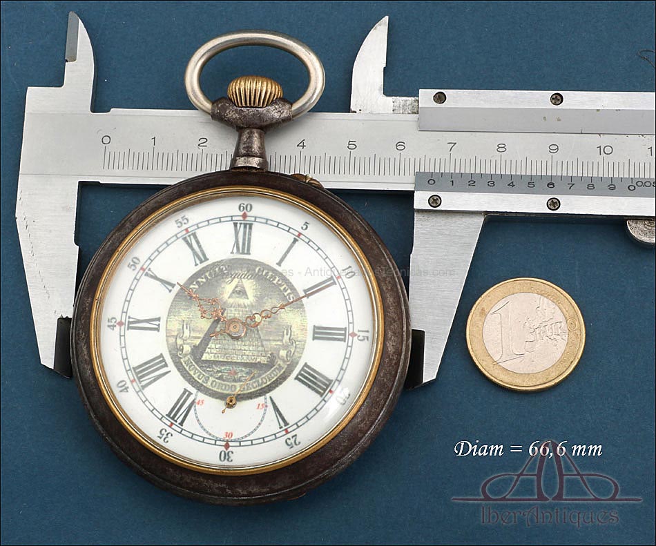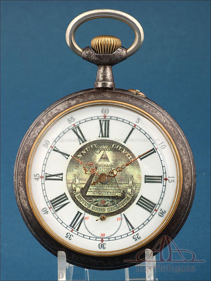 Antiguo Reloj de Bolsillo Masónico de 66,6 mm. Ojo de la Providencia, circa 1900 |