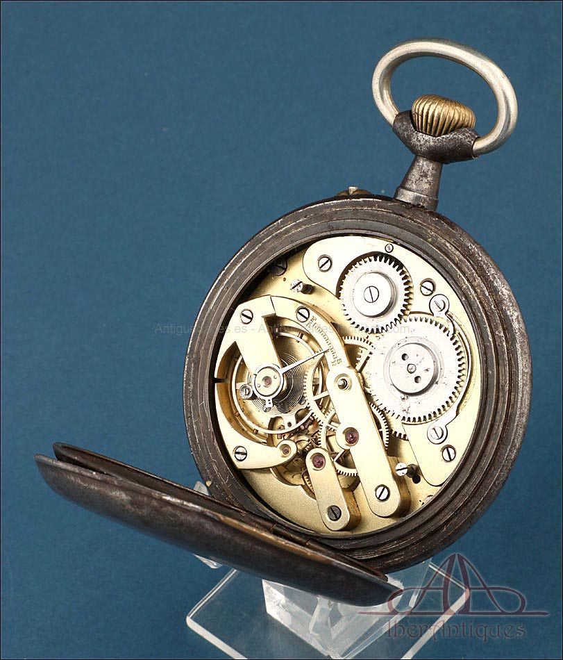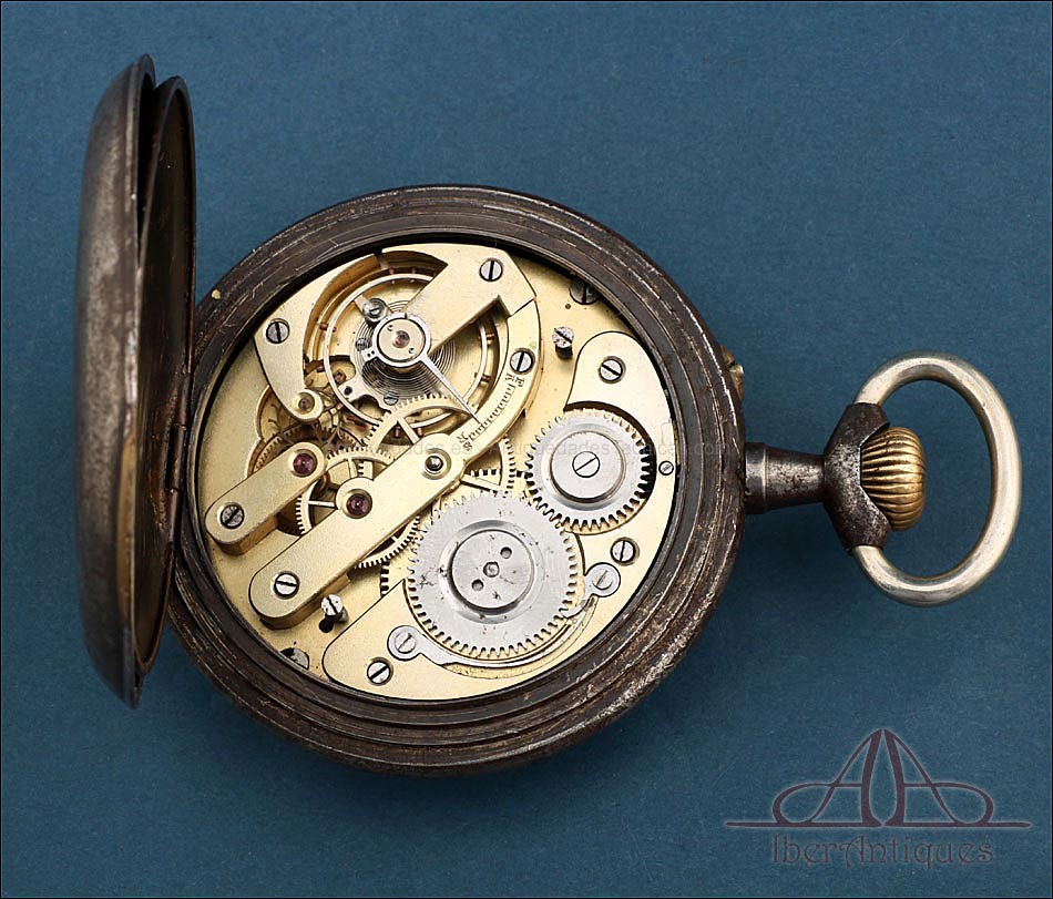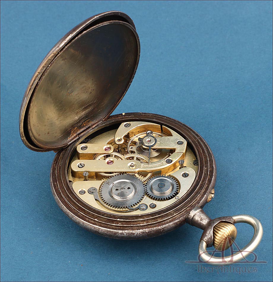 Estamos ante una pieza absolutamente fascinante por su simbolismo, su mecánica y su presencia: un antiguo reloj de bolsillo masónico, datado circa 1900 y dotado de una gran caja metálica pavonada de 66,6 mm de diámetro, medida poco habitual que encierra un simbolismo especial. Este dato no es menor: el 666 ha sido interpretado en múltiples tradiciones como número místico, y su asociación con corrientes esotéricas como la masonería o los Illuminati lo hace aún más intrigante. La caja muestra pátina y signos de uso compatibles con su antigüedad, lo cual aporta autenticidad sin restar atractivo visual ni valor de colección.