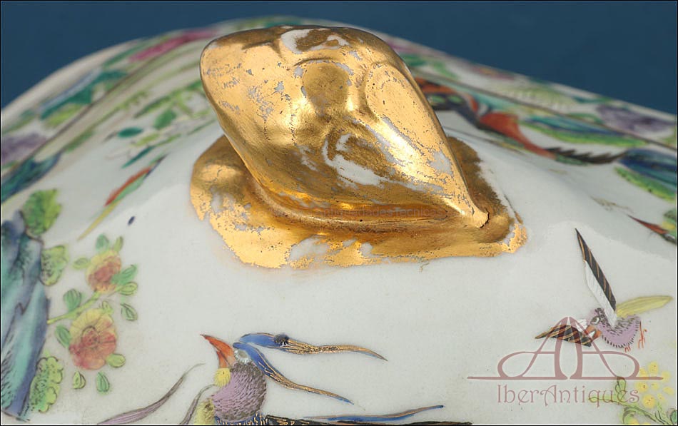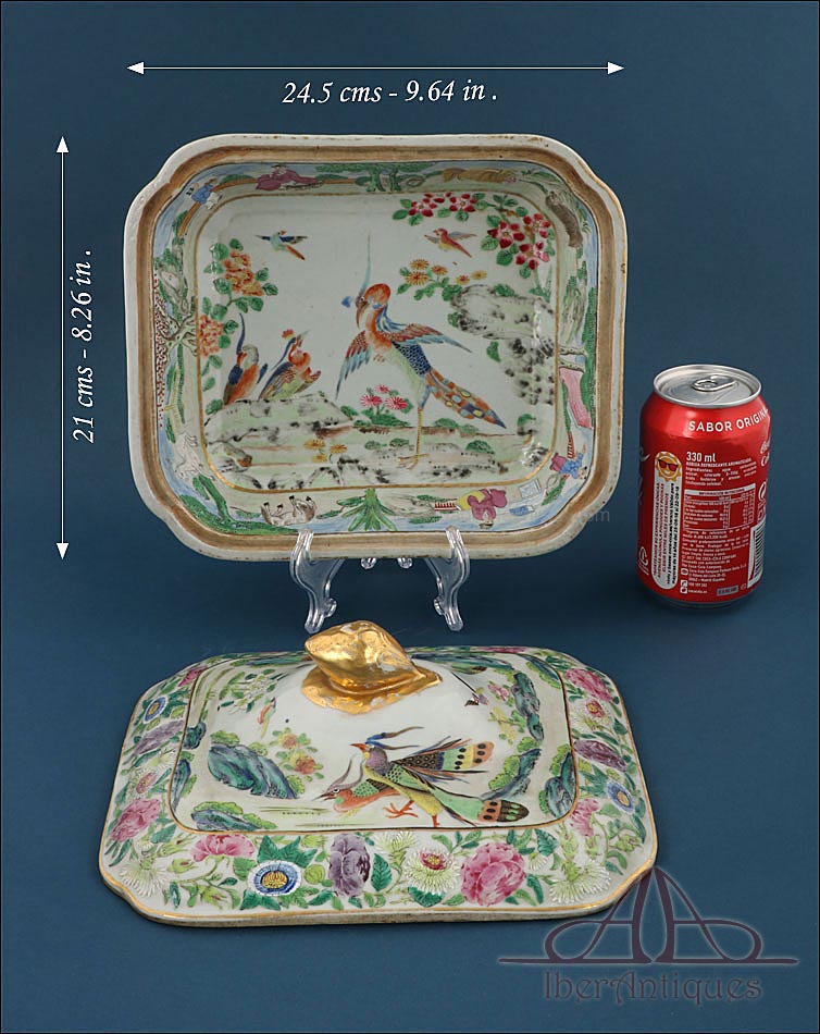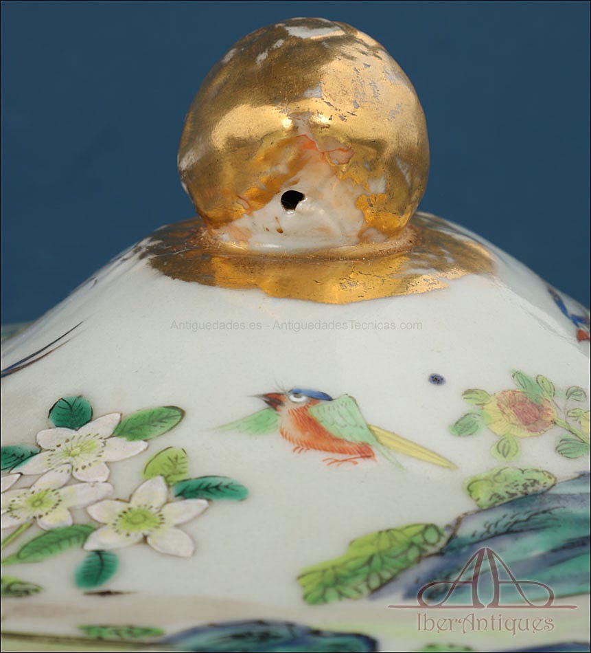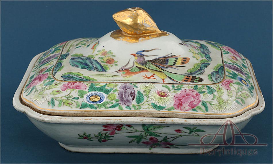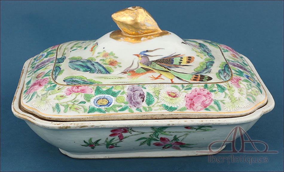 Preciosa Fuente con Tapa de Porcelana China Antigua. Qing. China S. XIX |