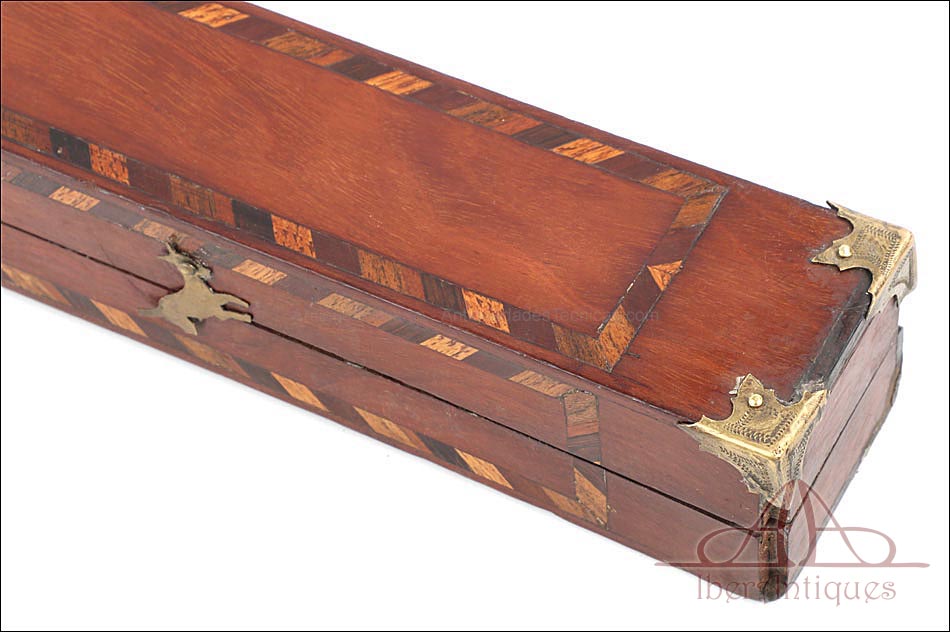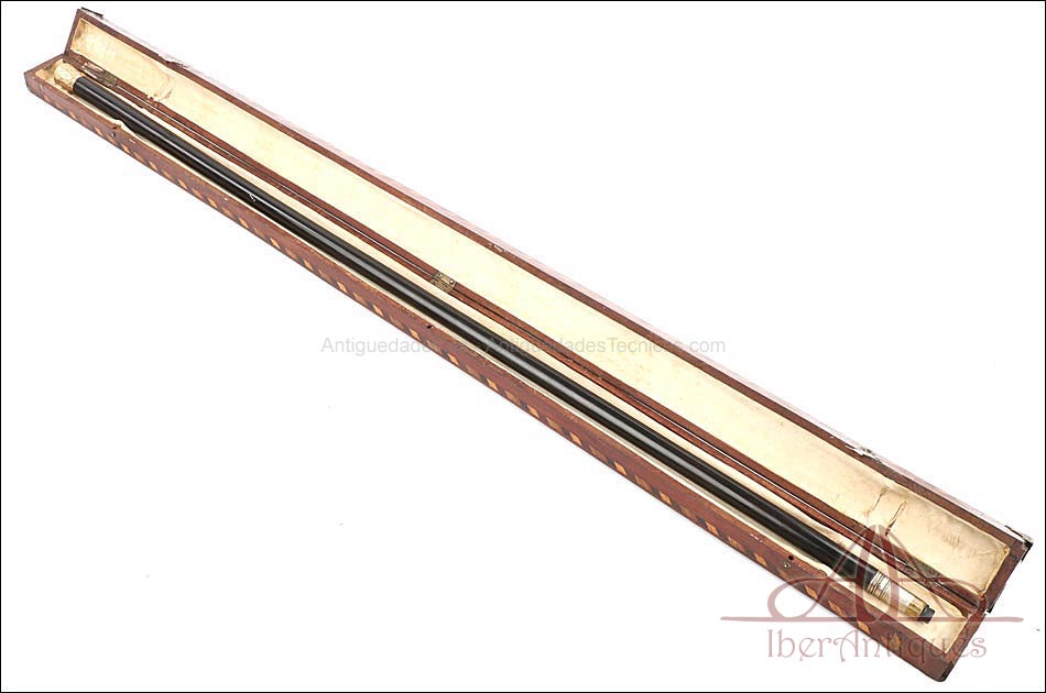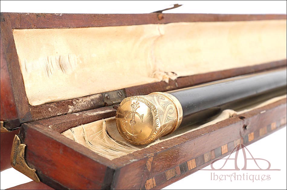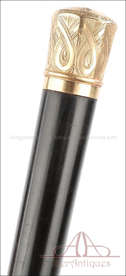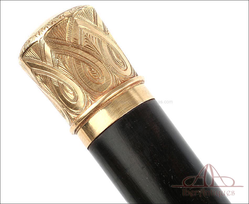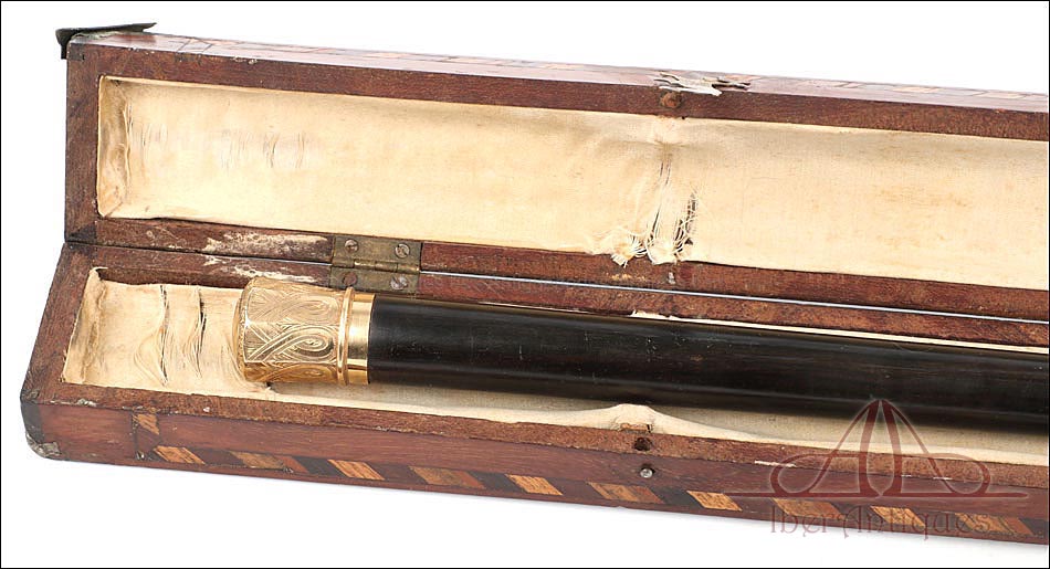 Antiguo Bastón en Estuche de Presentación y Pomo de Oro Macizo de 18K. C. 1900 |