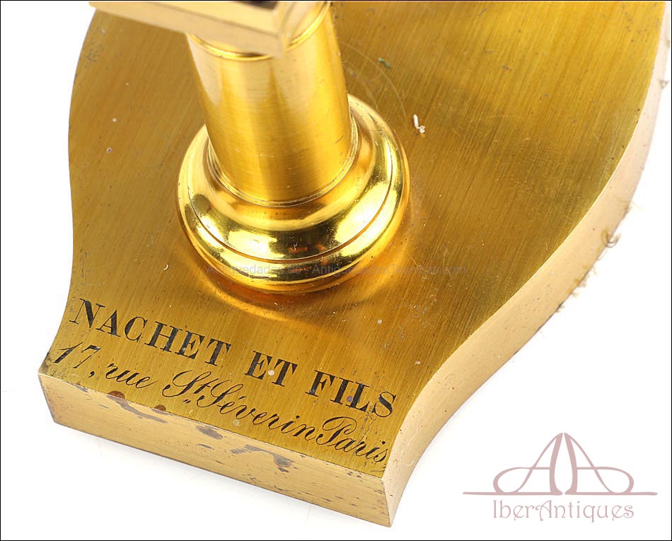 Antiguo Microscopio de Latón Nachet, Mod. 11. Francia, Circa 1890 |