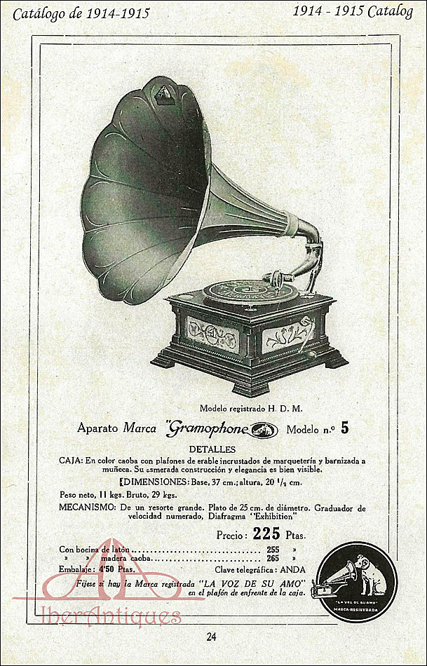 Precioso Gramófono Español Antiguo La Voz de Su Amo Mod. Nº5 España, Sobre 1920 |