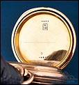 El mecanismo es un testimonio del alto nivel técnico de su época: movimiento de 20 rubíes, espiral Breguet en paladio, escape de áncora en línea recta con doble platina visible, volante compensado, todo ello claramente especificado en el interior de la tapa grabada. Esta tapa interior, decorada con grabados ornamentales y la firma del fabricante, también sirve como protección adicional para la maquinaria, lo que destaca el nivel de cuidado y diseño aplicado en su creación.