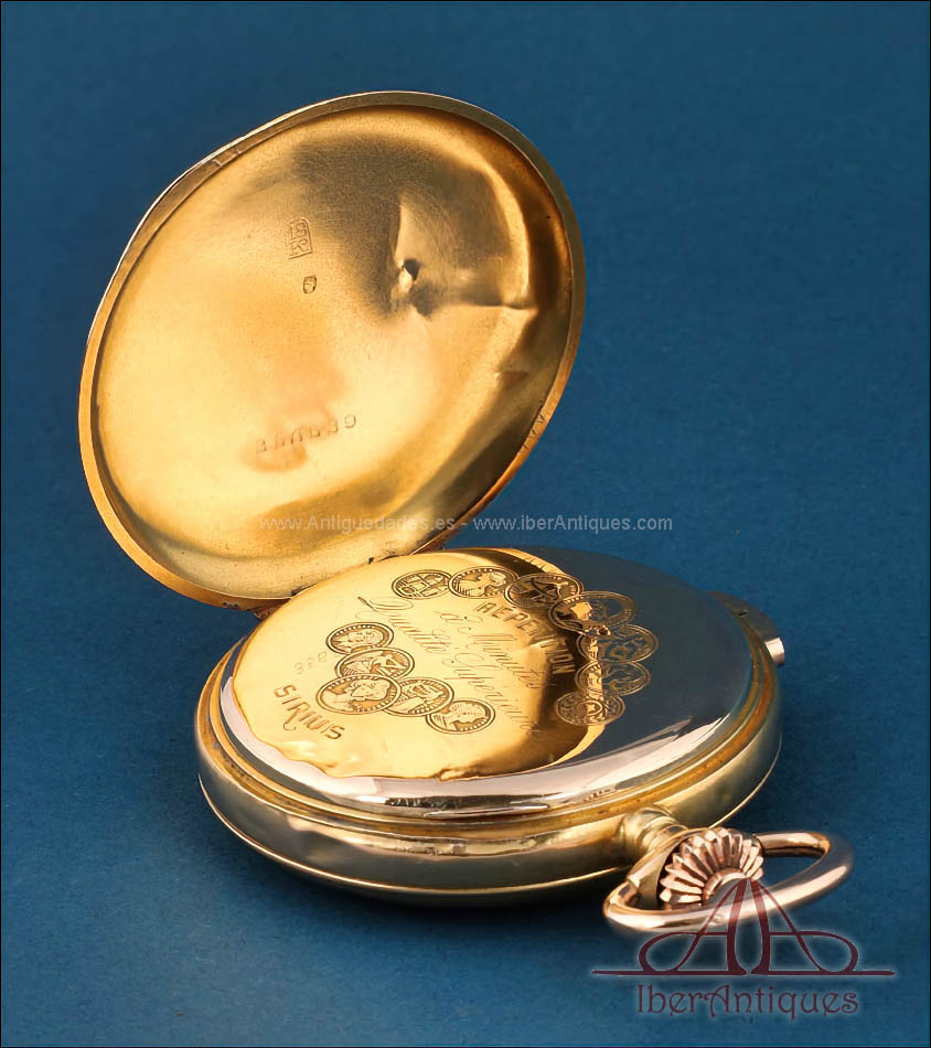 Antiguo Reloj de Bolsillo Sirius en Oro 18K con Sonería a Minutos. Suiza, c. 1915 |