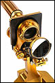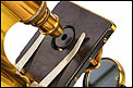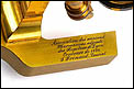El elemento más relevante y verdaderamente singular de este microscopio es la inscripción grabada en la base, perfectamente legible y realizada de origen, que dice textualmente: