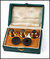 Se acompaña de su estuche original de madera, fabricado a medida, con compartimentos específicos para cada componente. El estuche conserva la cerradura original y su llave, y el sistema de cierre funciona correctamente. El interior mantiene el forrado original, bien conservado, lo que refuerza el carácter de conjunto completo y cuidado desde su origen.