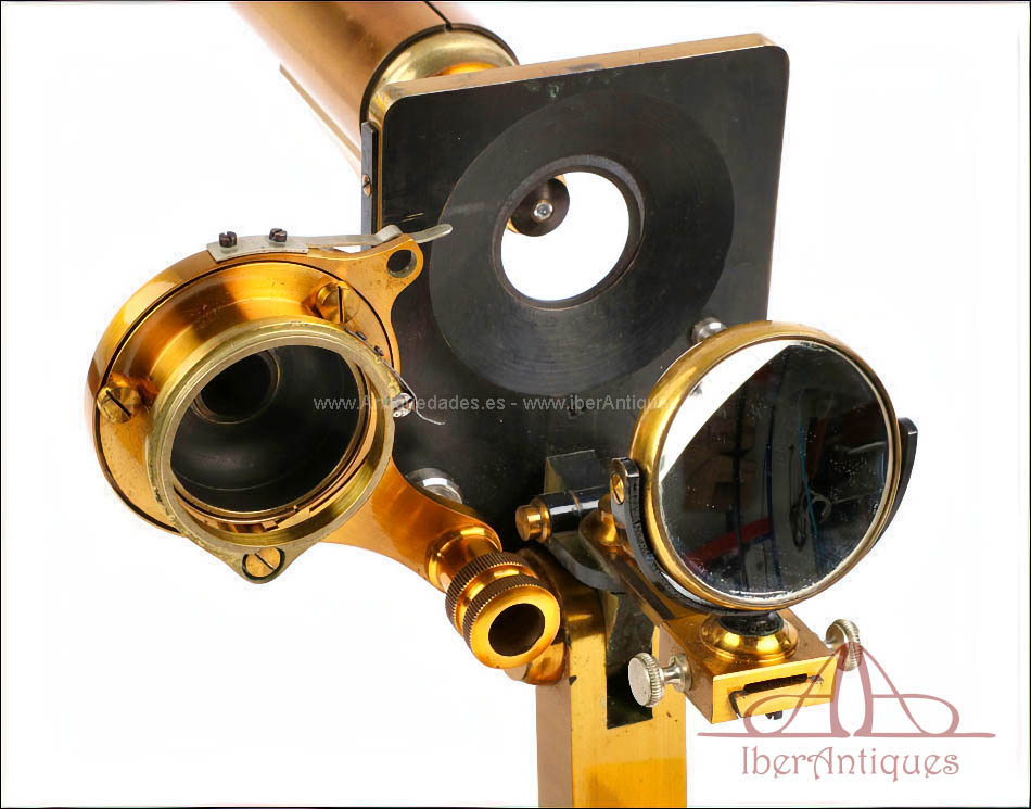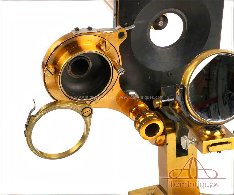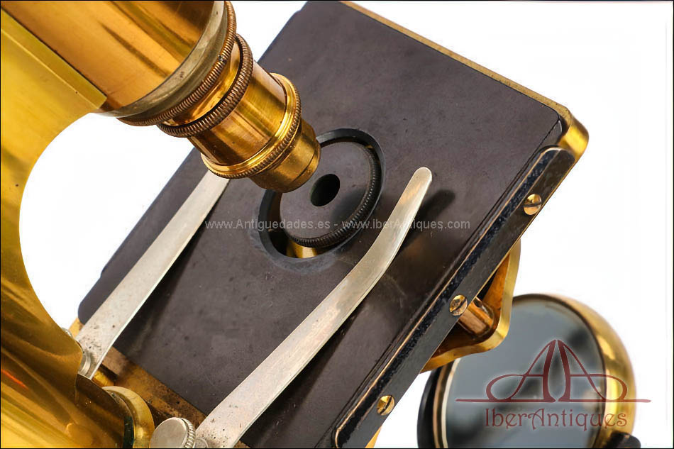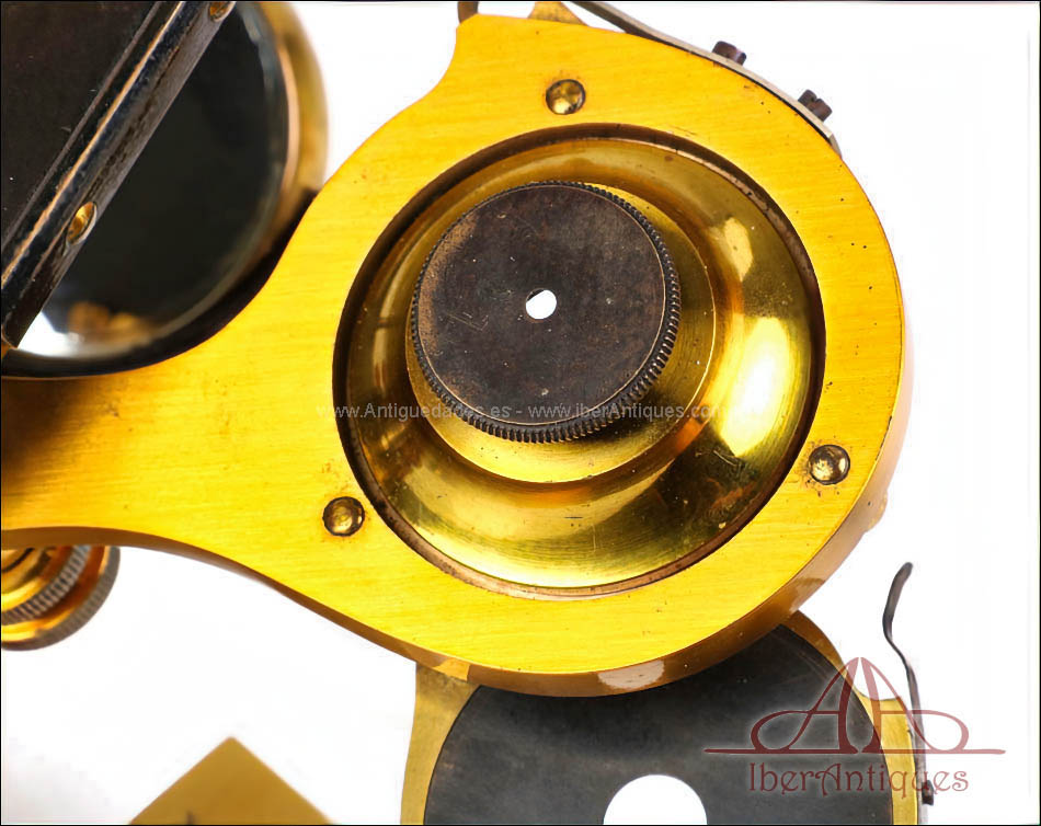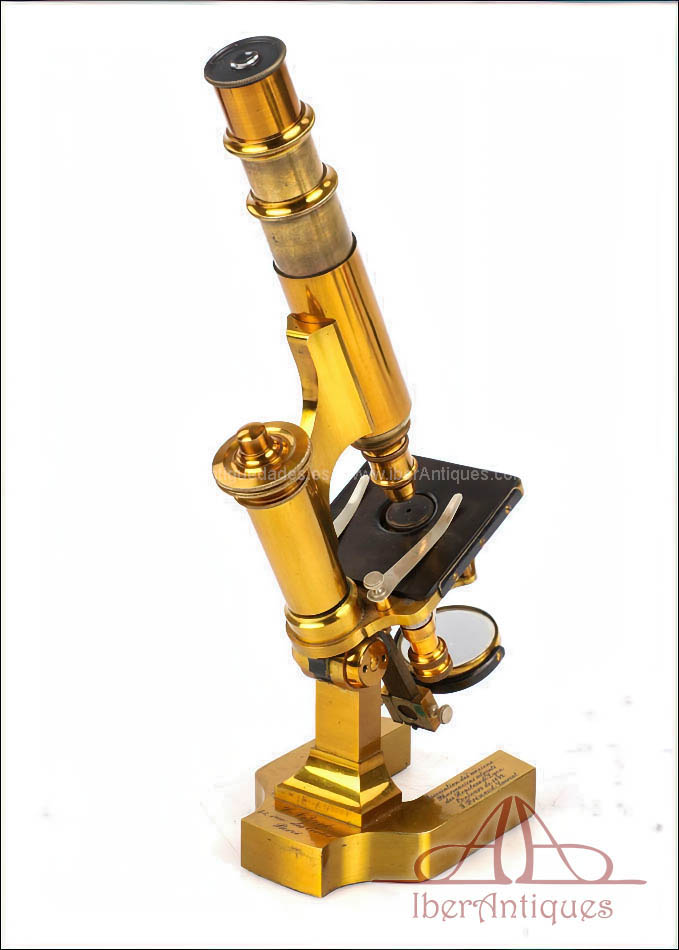 Extraordinario microscopio antiguo francés fabricado en 1890 por la prestigiosa casa C. Verick, una de las firmas más valoradas dentro de la instrumentación científica europea del siglo XIX. La pieza está realizada íntegramente en latón, con una construcción sólida, elegante y perfectamente equilibrada, y presenta un estado de conservación excepcional, prácticamente como nuevo, algo muy poco habitual en instrumentos de este tipo y época.