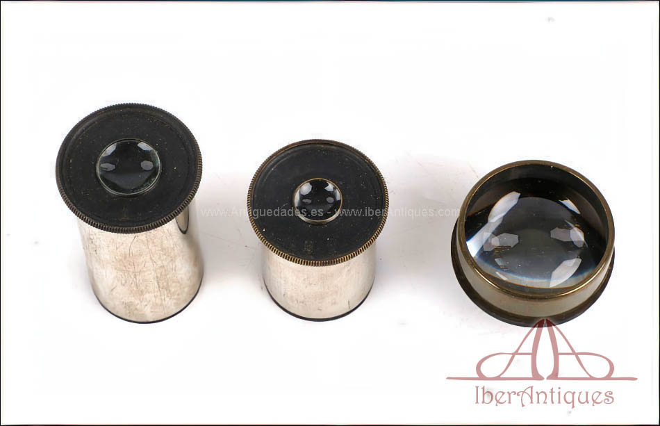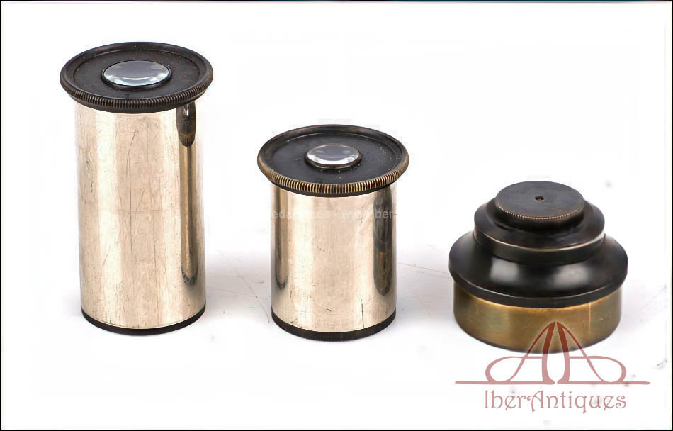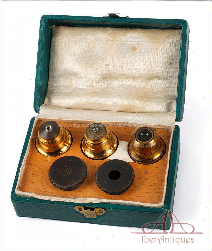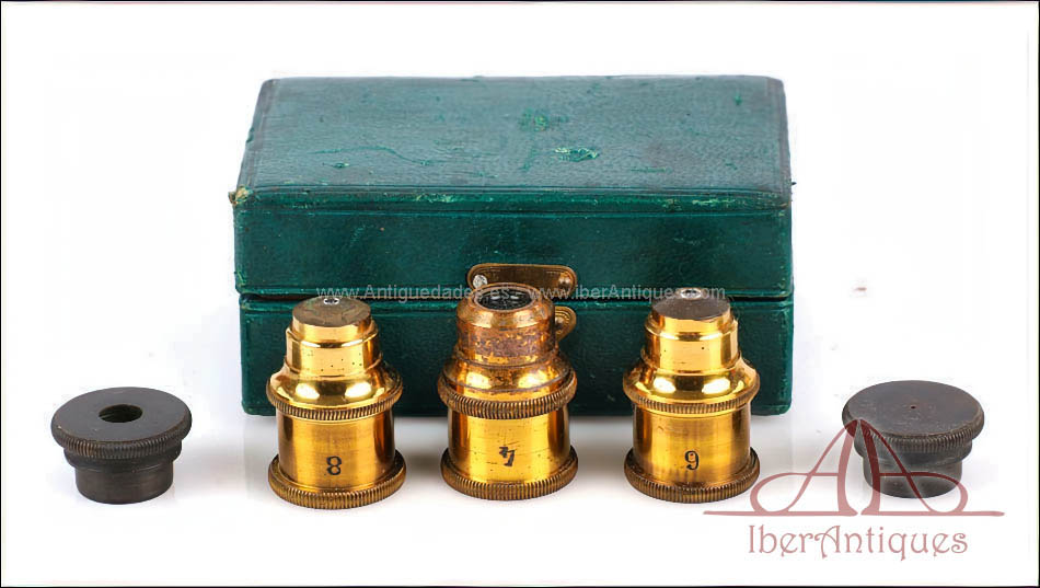 Incluye dos oculares intercambiables, tres objetivos originales y varios accesorios adicionales para el uso del microscopio, todos ellos de época y perfectamente compatibles. Este conjunto lo convierte en un microscopio muy completo, representativo del alto nivel técnico de la óptica francesa de finales del siglo XIX, pensado para un uso profesional exigente.