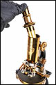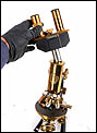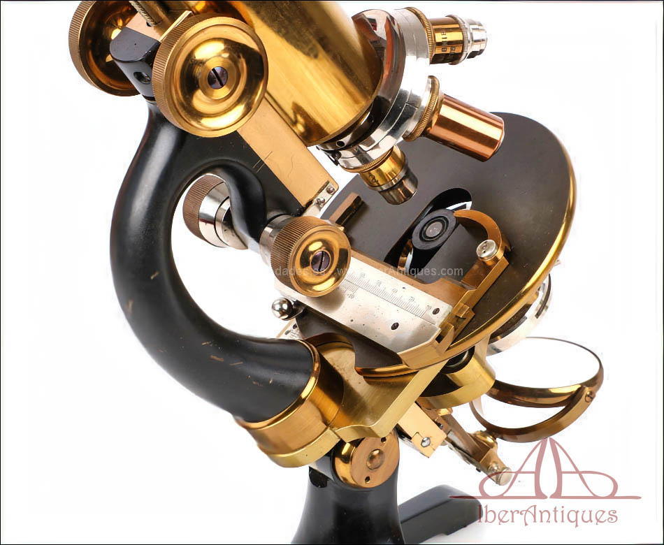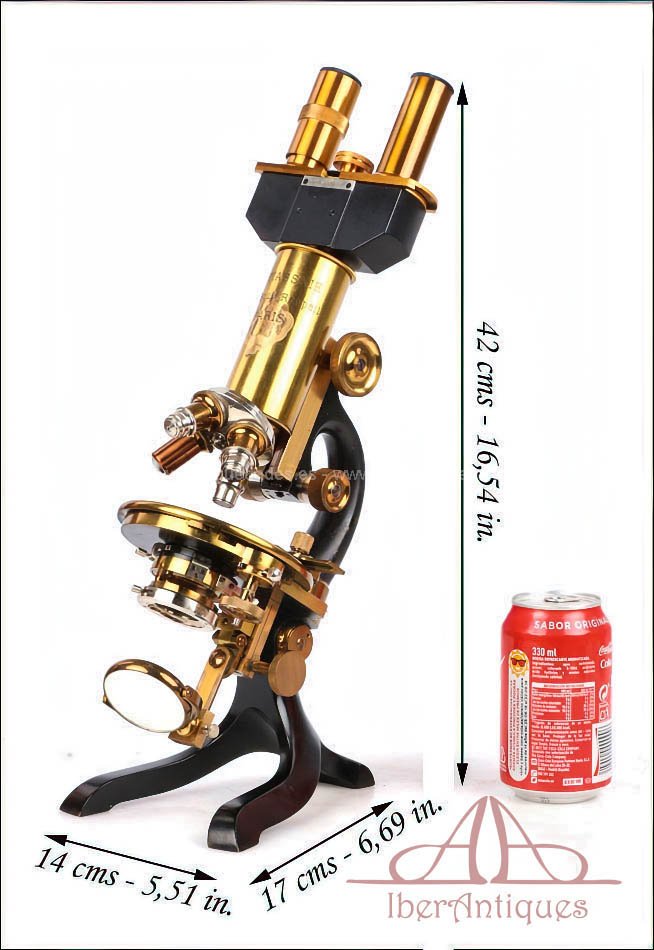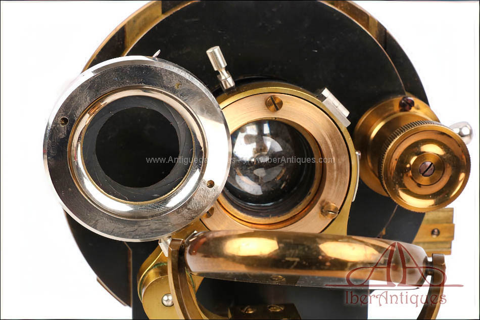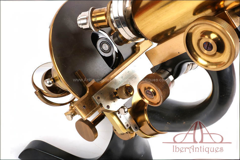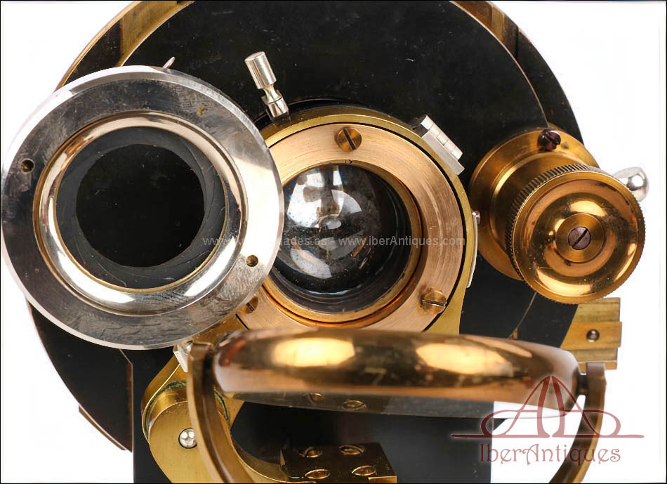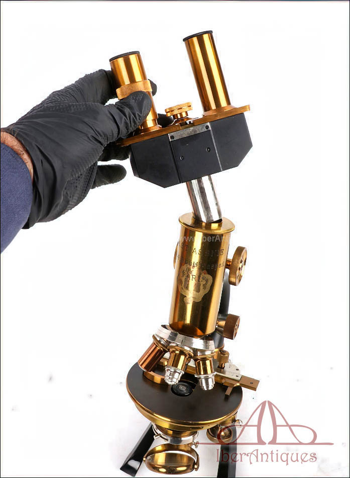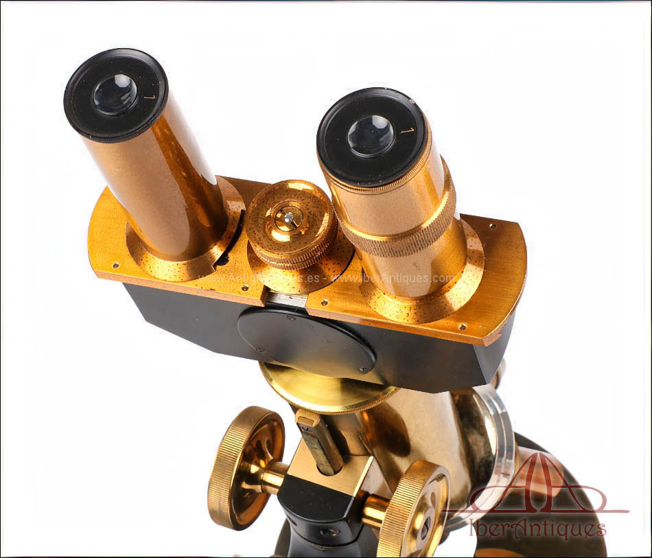 Por su excelente estado de conservación, este microscopio resulta especialmente atractivo dentro de su categoría. La presencia del accesorio binocular original, poco común, lo convierte en una pieza difícil de encontrar tan completa. La calidad del latón dorado con barniz original y la amplitud del conjunto hacen de este microscopio una opción muy interesante para una colección especializada o como pieza destacada de vitrina.