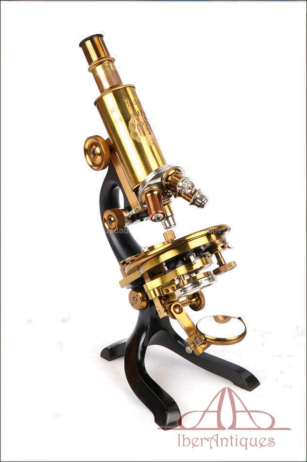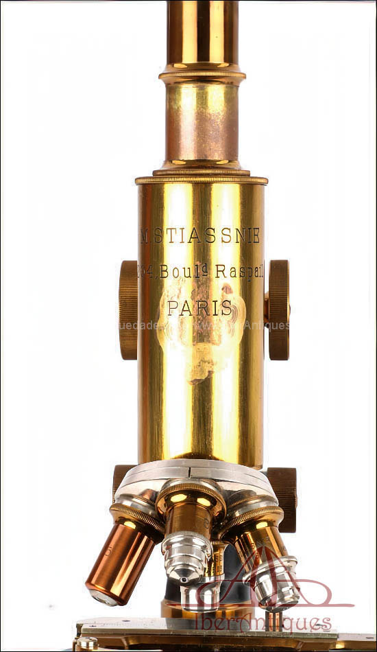 La casa M. Stiassnie fue un fabricante francés especializado en instrumentos científicos y ópticos de precisión, activo en París entre finales del siglo XIX y las primeras décadas del siglo XX. Sus microscopios estaban destinados principalmente a uso médico, universitario y de laboratorio, y se caracterizan por una construcción sólida, el empleo de materiales nobles como el latón dorado y una mecánica fiable pensada para un uso intensivo. Durante este periodo, París fue uno de los grandes centros europeos de producción de instrumental científico, junto a Berlín y Londres, y albergó numerosos talleres dedicados a la fabricación de aparatos ópticos de alta calidad.