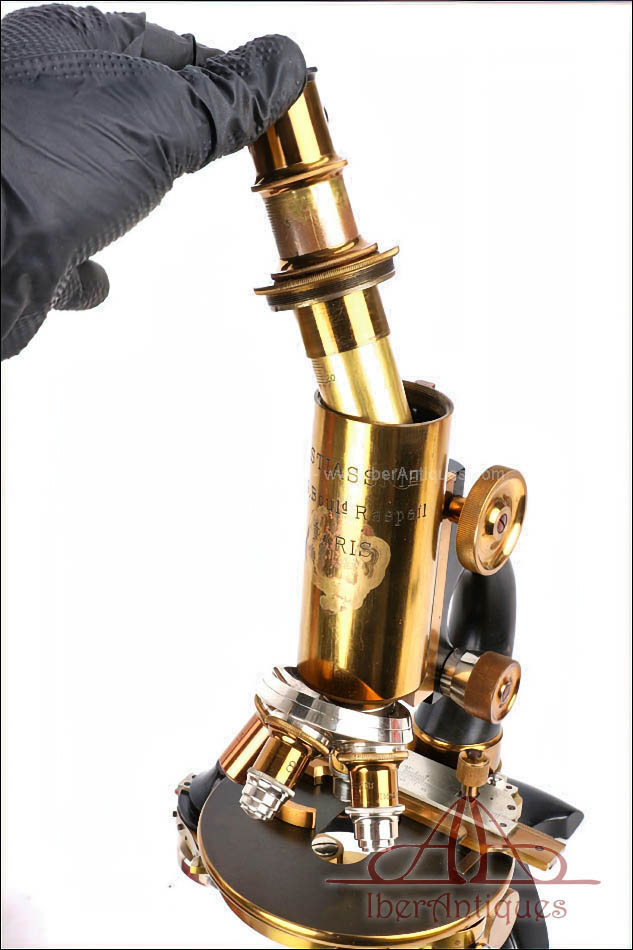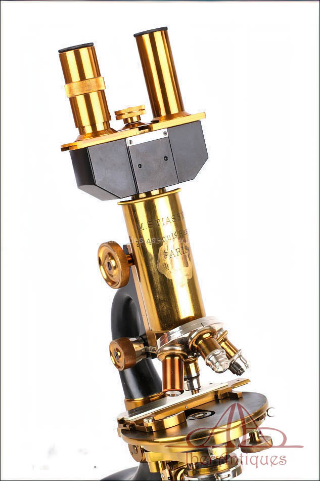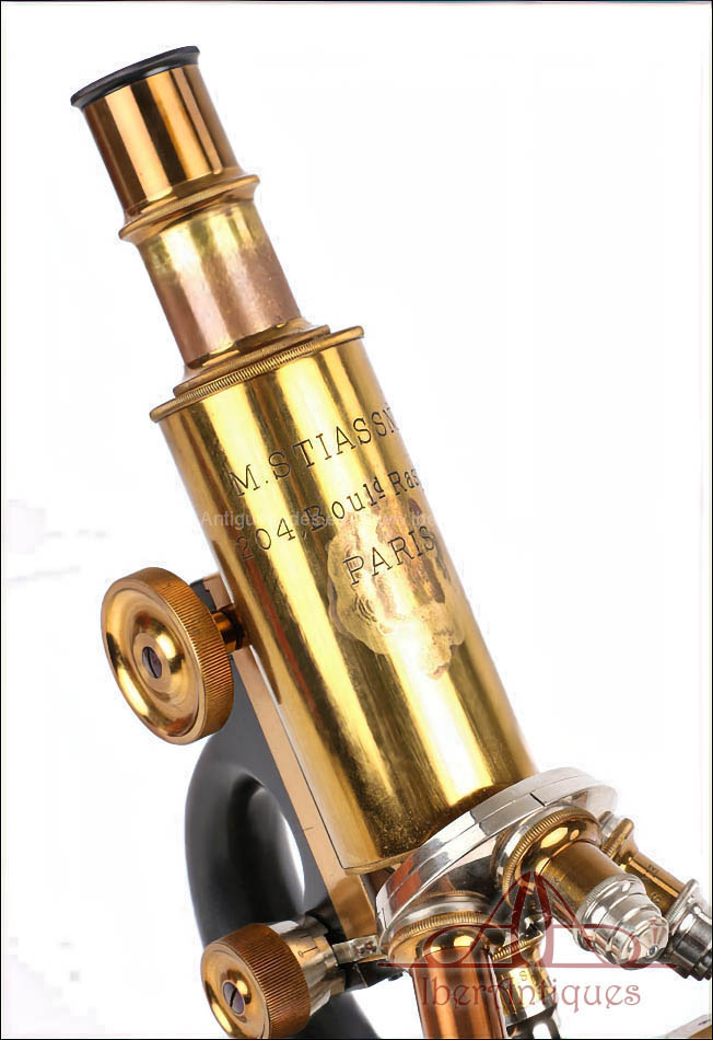 Los instrumentos firmados por M. Stiassnie se sitúan dentro de esta tradición parisina de precisión y buen oficio, orientada a profesionales de la medicina, la investigación y la docencia. Sus microscopios solían ofrecer configuraciones completas, con ópticas propias, estuches bien diseñados y soluciones técnicas adaptadas al trabajo diario en laboratorio. Hoy en día, los microscopios de esta casa son apreciados por coleccionistas e instituciones, especialmente cuando se conservan con su acabado original y accesorios poco comunes, como los cabezales binoculares desmontables.
