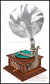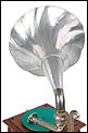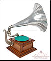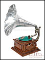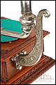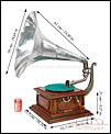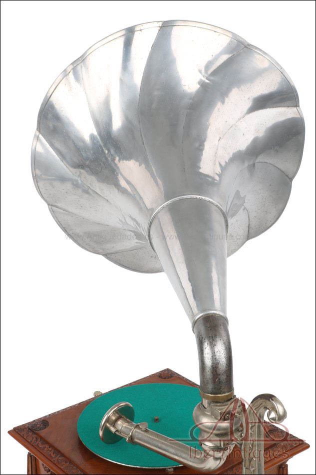 Las trompas de aluminio, como la que equipa este modelo, eran un distintivo de los gramófonos de alta gama y era un extra opcional, que había que comprar aparte. Su forma en espiral y su material liviano permitían una mejor resonancia y un diseño más vanguardista que las tradicionales trompas florales. Se conservan pocos ejemplartes.